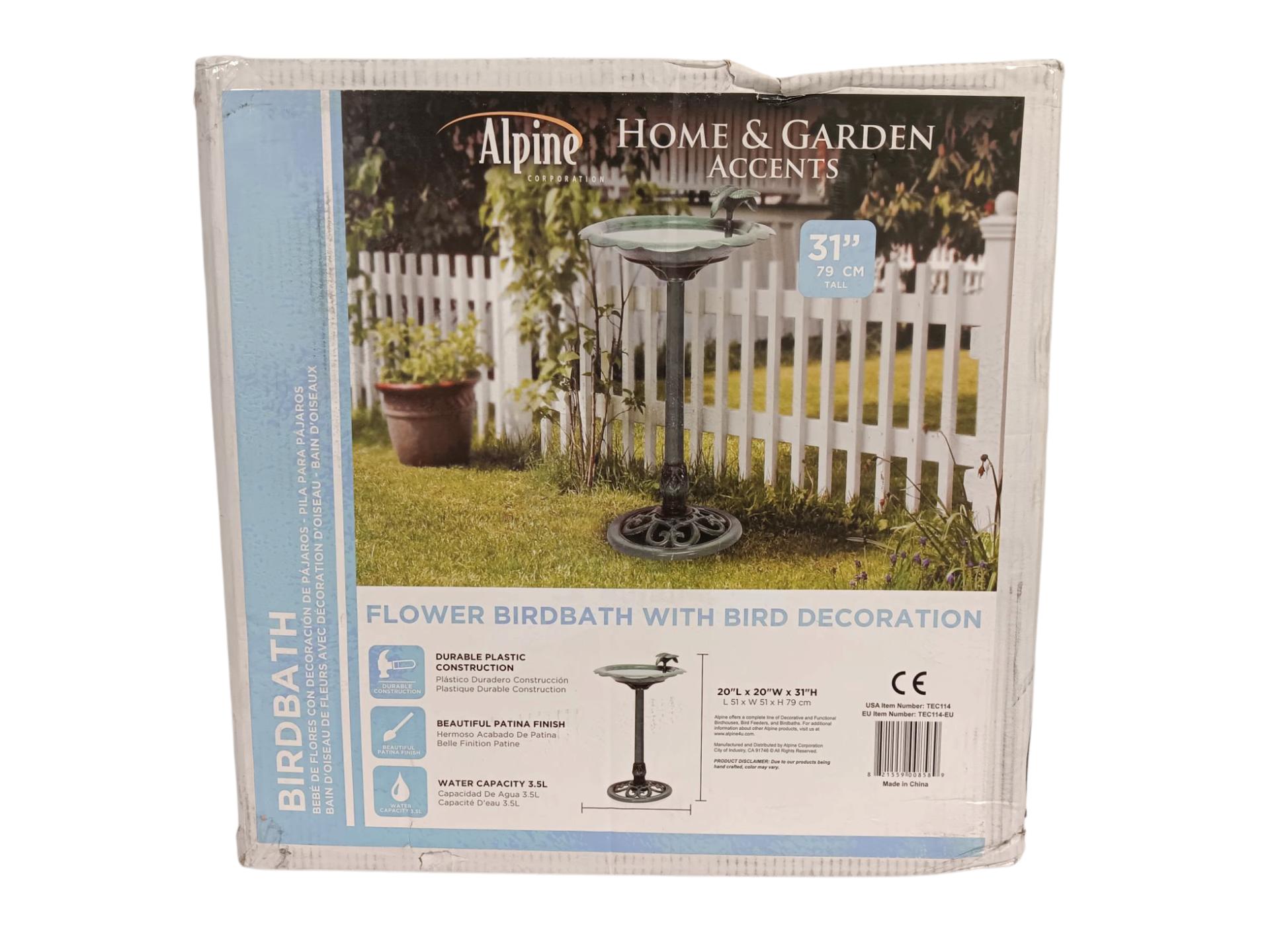 STUNNING BIRDBATH: Add a touch of elegance to your garden or outdoor space with the Alpine Corporation Antique Flower Birdbath. Standing 31" tall, this beautifully designed birdbath features intricate flower detailing and a charming bird accent. Its attractive appearance and functional design will draw in a variety of feathered friends, creating a peaceful and inviting ambiance for your patio, garden, deck, or yard.