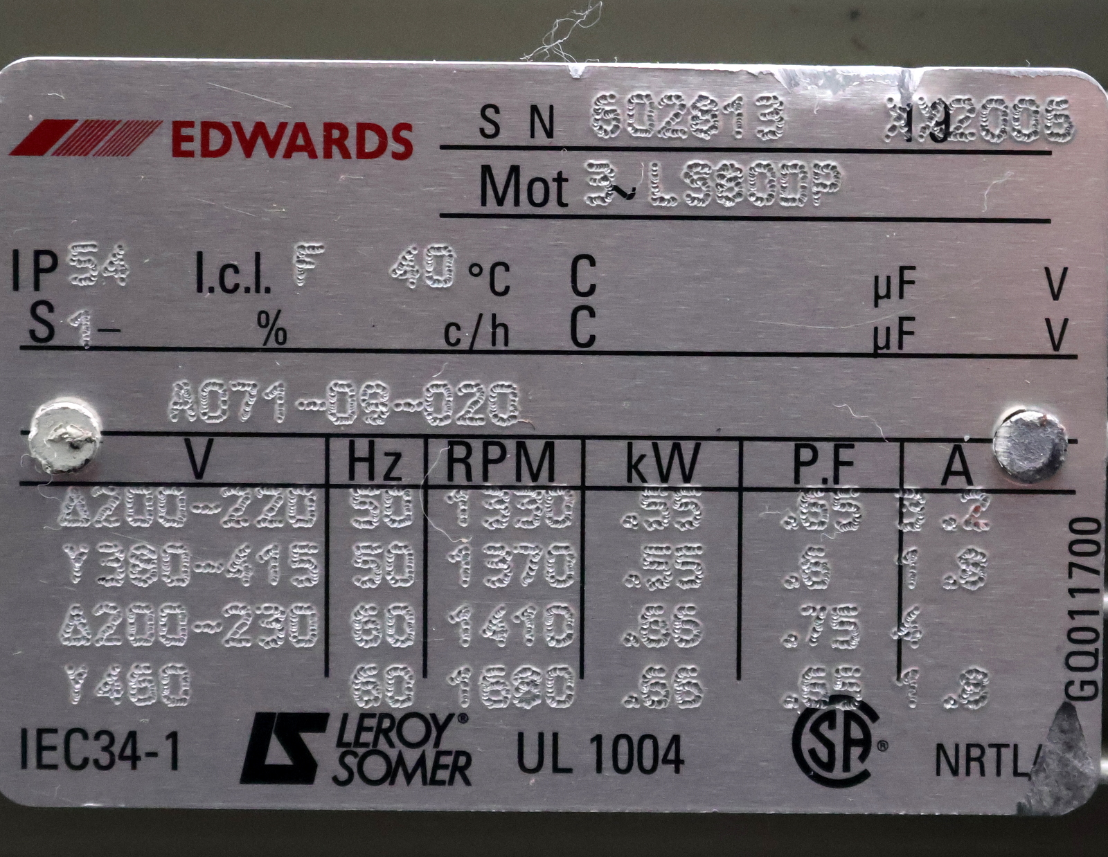 200-220V 50Hz 1330RPM 3,2A