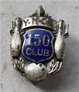 Here is a great vintage Tiny YMCA 150 Club award Silver and Blue Color with 2 Bowling pins and Bowling ball Pinback Pin RARE. Good Used Condition-SEE ALL PHOTOS. It measures about 1/2 inches tall by about 1/2 inches long. Grab this great Bowling Collectible while you still can it will not last long.