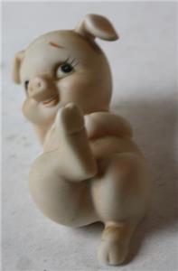 Here is a great ceramic porcelain hand painted Lefton Made in Taiwan Naked Pig Cartoon Comic style with Foot Up eyelashes Pig Figurine. It is So Cute. It is in Good Used Condition! It is marked on bottom-SEE ALL PHOTOS. It measures about 2 inches tall and about 3 1/2 inches long. Grab this great vintage collectible while you still can it while it last long. Postage on this item is $5.95. WE GLADLY COMBINE SHIPPING!