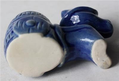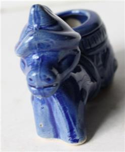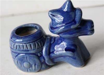 Here is a great unusual miniature ceramic-porcelain hand painted Unmarked Blue Donkey pulling a Flower Cart toothpick holder match holder Donkey Figurine. It is Adorable. It is unmarked on bottom-SEE PHOTOS. It measures about 2 3/4 inches tall by about 3 1/2 inches wide. Grab this great vintage collectible while you still can it will not last long.