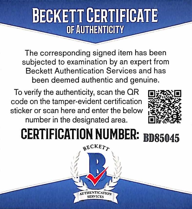 We 100% guarantee the authenticy of all pieces and in some cases the signing date and information is provided for the buyer. All pieces are Beckett Certified unless noted and are guaranteed authentic. They include Beckett's tamper-proof serial-numbered hologram with a QR code to quickly verify the authenticity in the Beckett online database. We are also a RACC Trusted Seller
