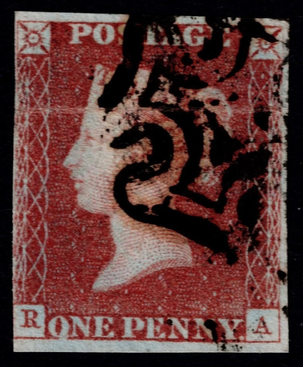 A good used 1d Red-Brown from Black plate 10, lettered RA. Variety: 'P converted to R'. Cancelled by a fine black Maltese Cross. There is a crease, otherwise sound. SG 7 Spec. AS68c Cat. £325.00