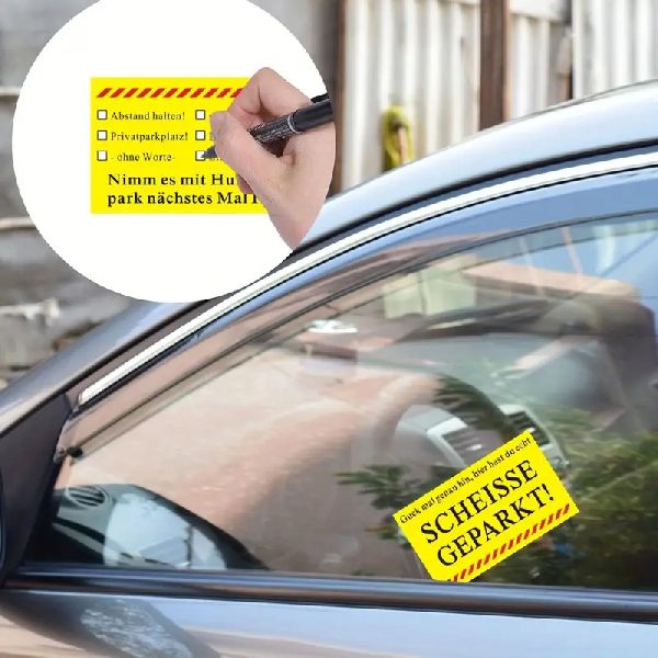 Mit diesen Karten kannst Du Deinem Ärger Luft machen! Klemme sie dem Falschparker einfach hinter den Scheibenwischer, an den Türgriff oder an die Seitenscheibe und drücke so aus, was Du von seinen vermeintlichen Parkkünsten hältst.