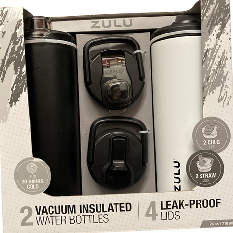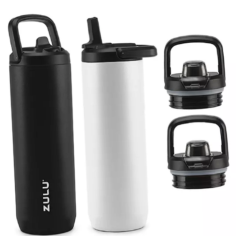 Zulu 411-2401-900 Stainless Steel Water Bottle with Lids., 2pk 24oz, Includes 2 Extra Lids