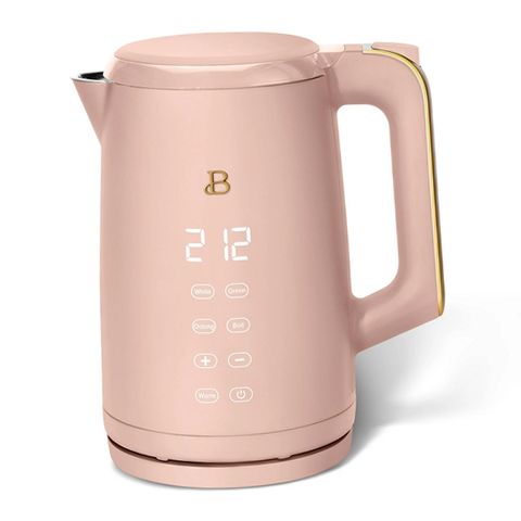Tea that tastes just right. The Beautiful 1.7L Programmable Temperature Kettle with Touch-Activated Display allows you to boil 7 cups of water in under 7 minutes. 4 one-touch preset programs for white, green, oolong and black teas ensure every cup is brewed to perfection. Created by Drew Barrymore, Beautiful Kitchenware combines elegant design and contemporary colors for high-performance appliances that look beautiful on your kitchen counter.