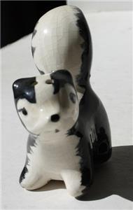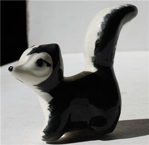 Here is a great vintage ceramic porcelain hand painted Unmarked Skunk with tail up Salt or Pepper Shaker NO Stopper Skunk Figurine. It is Awesome. It is unmarked on bottom-SEE ALL PHOTOS. It measures about 2 1/2 inches tall by about 3 inches long. Grab this great Collectible while you still can it will not last long.
