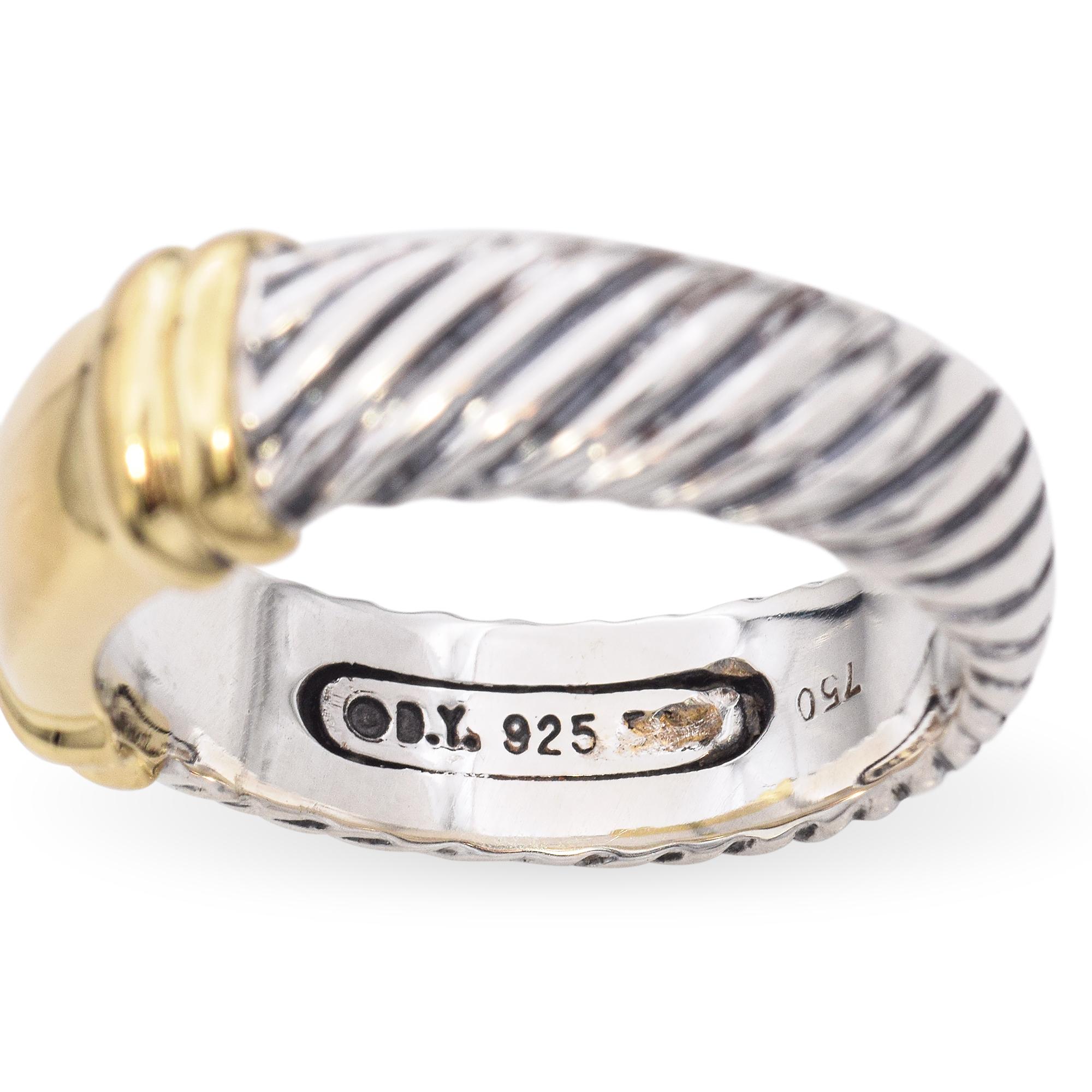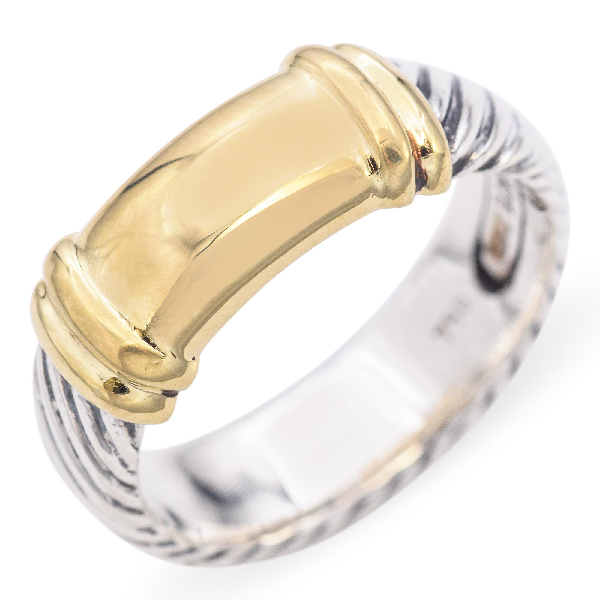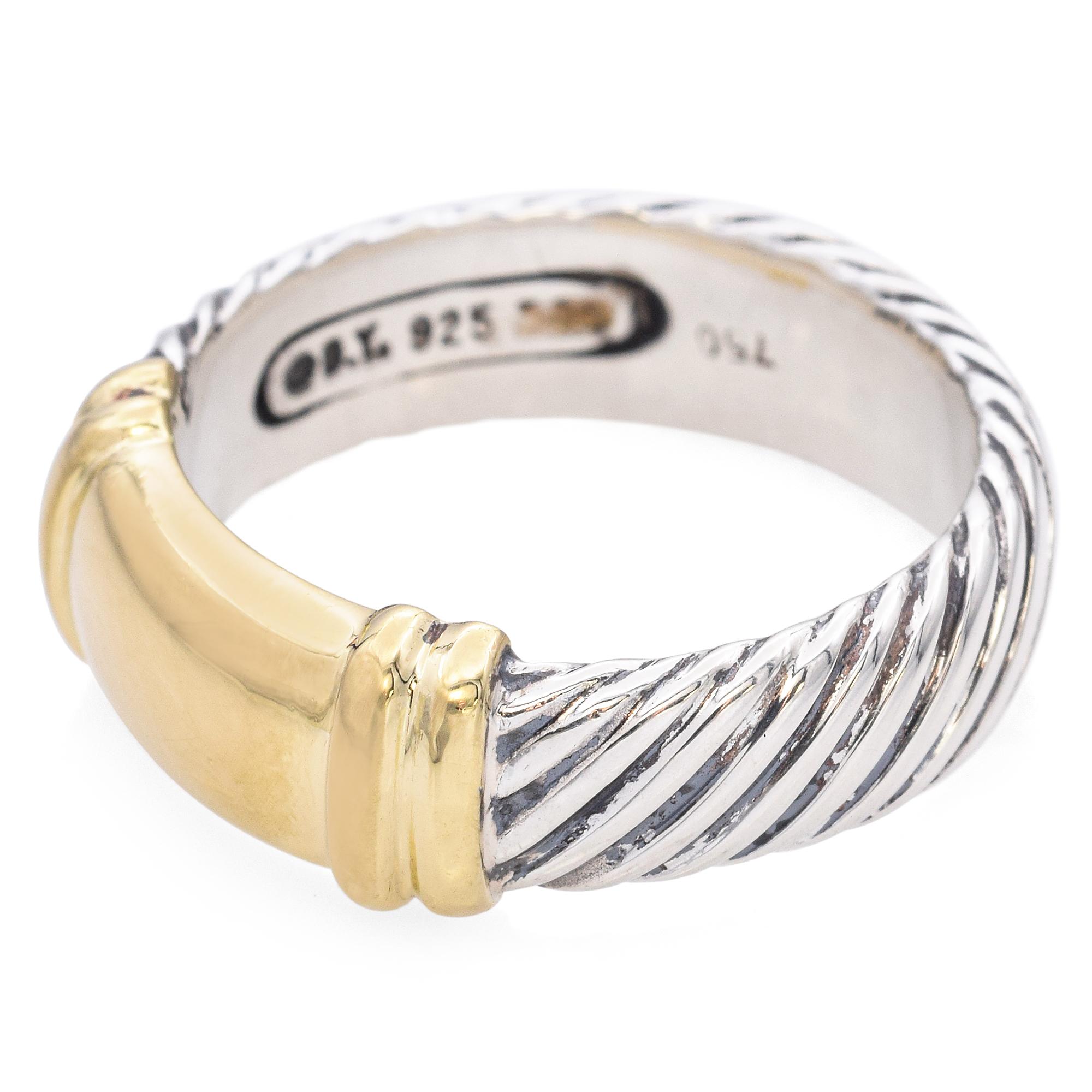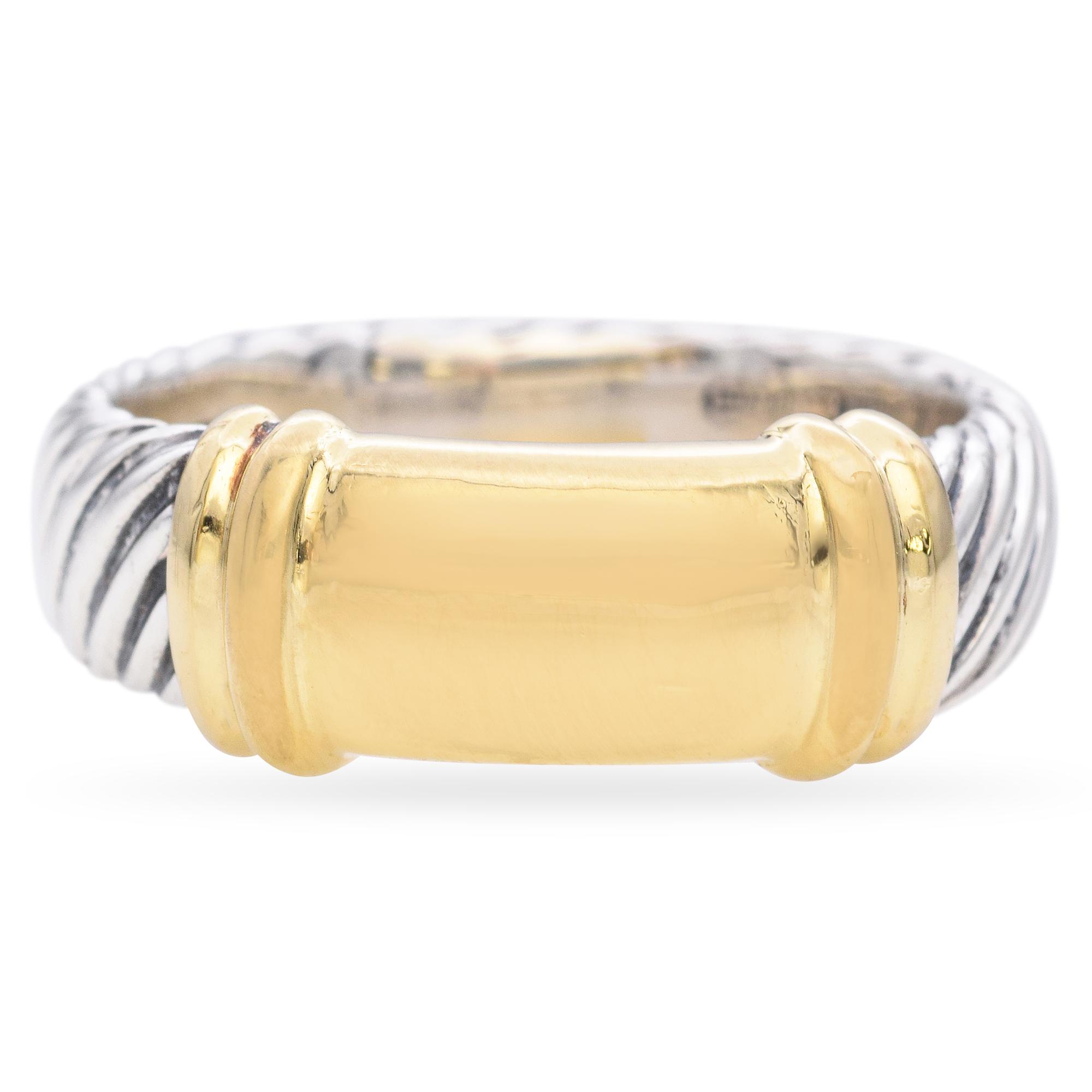 David Yurman 18K Yellow Gold and 925 Sterling Silver Two Tone Cable Ring