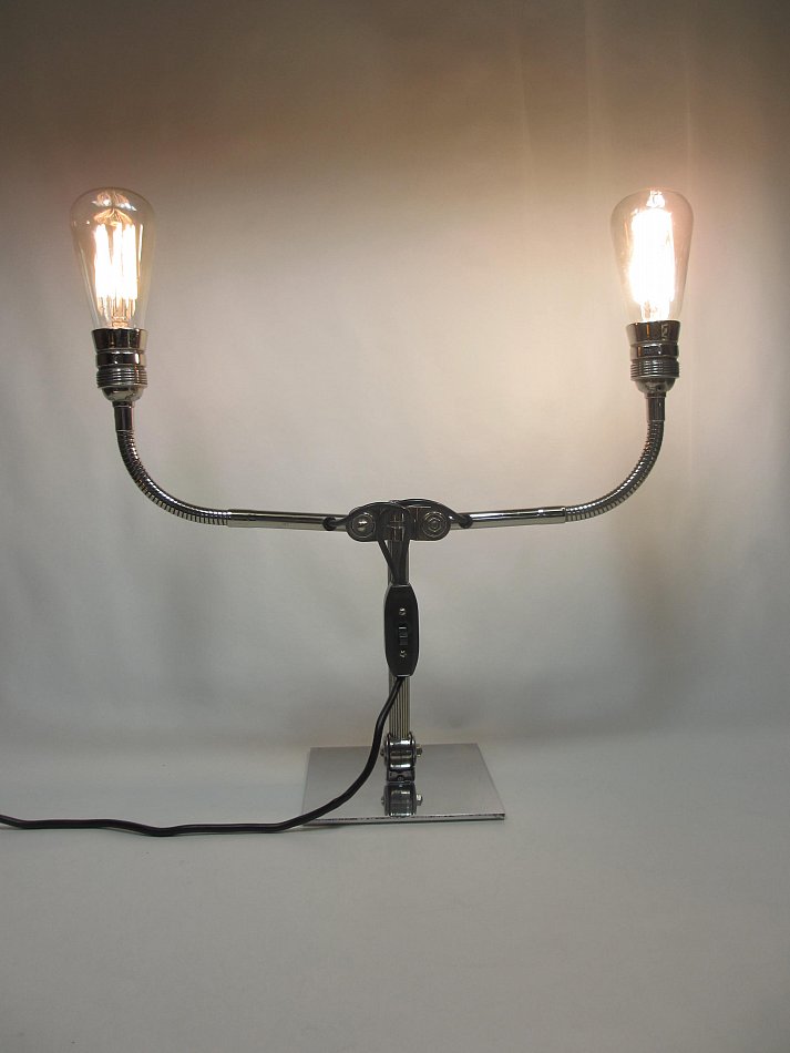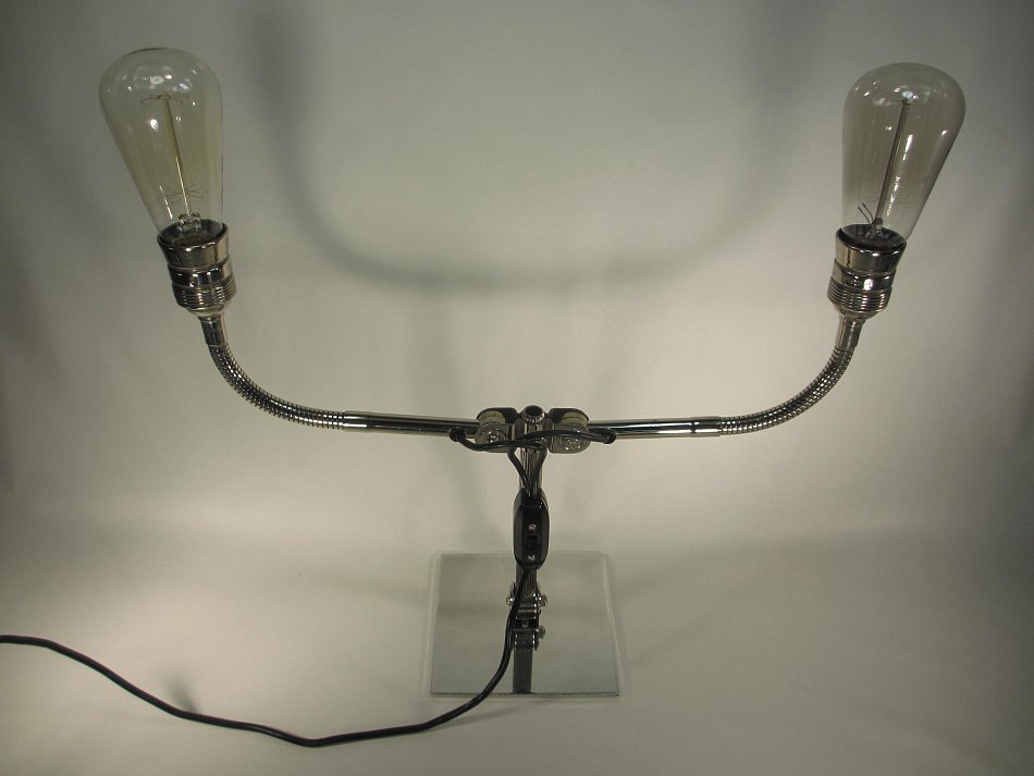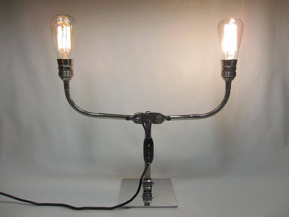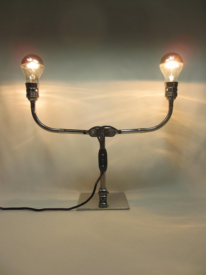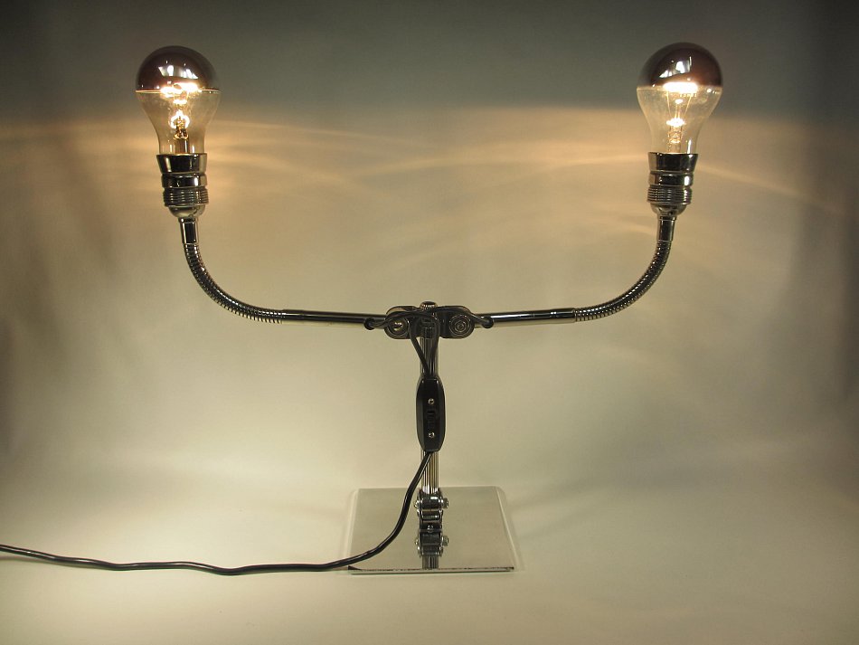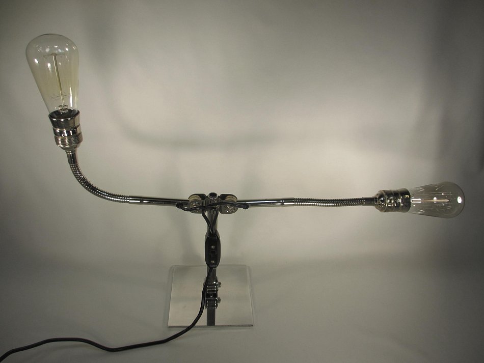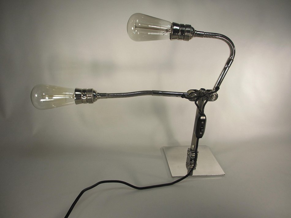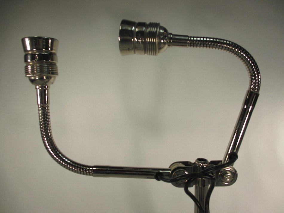 Es gibt DREI Gelenke, und zwei Flexible Fassungsarme! Die beide Fassungsarme können in der Neigung verstellt werden, der Lampenarm kann bis ganz nach vorn und nach hinten bis auf die Tischplatte verstellt werden.