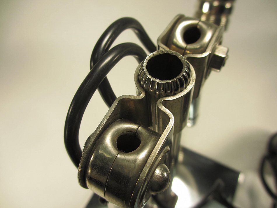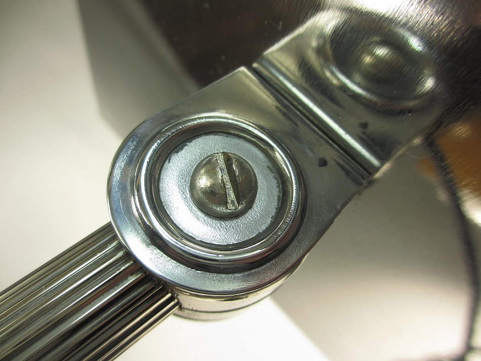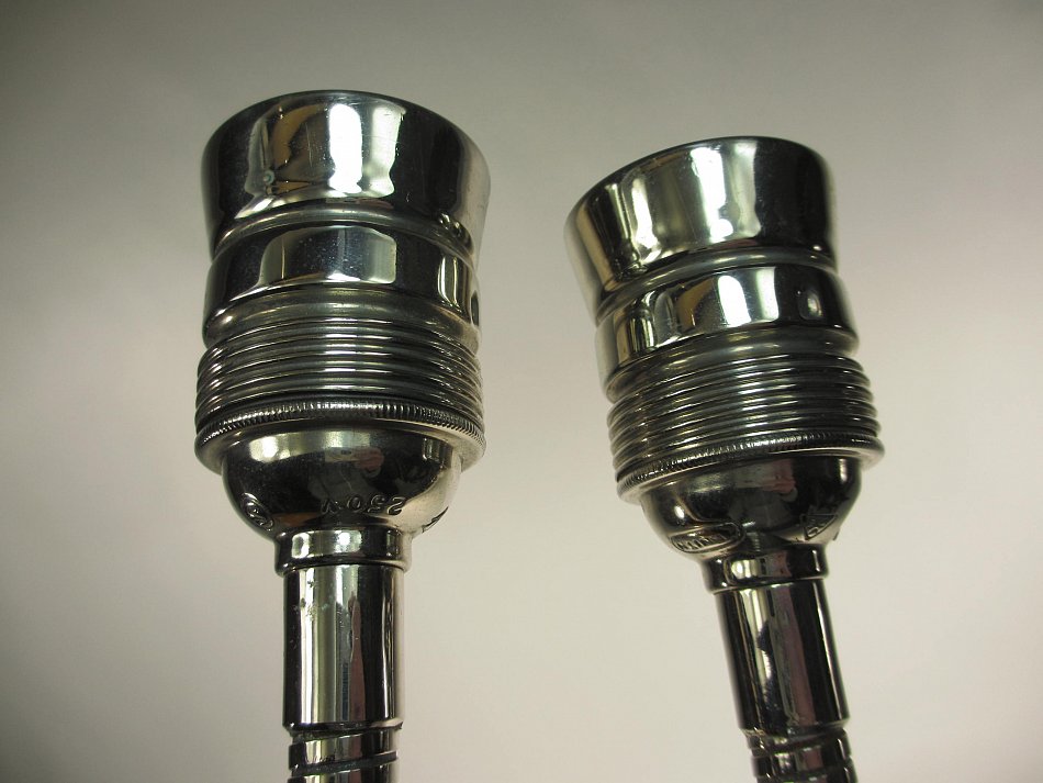 Komplett aus Messing vernickelt gefertigt. Nickel sieht edler und schöner aus wie Chrom, hat einen leichten Antik Charme.