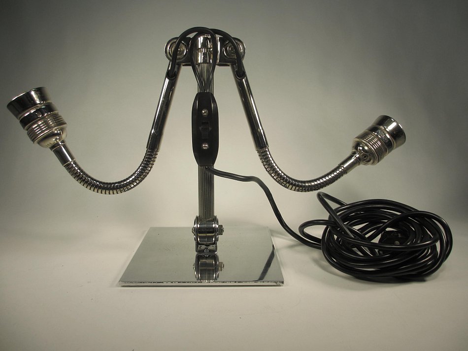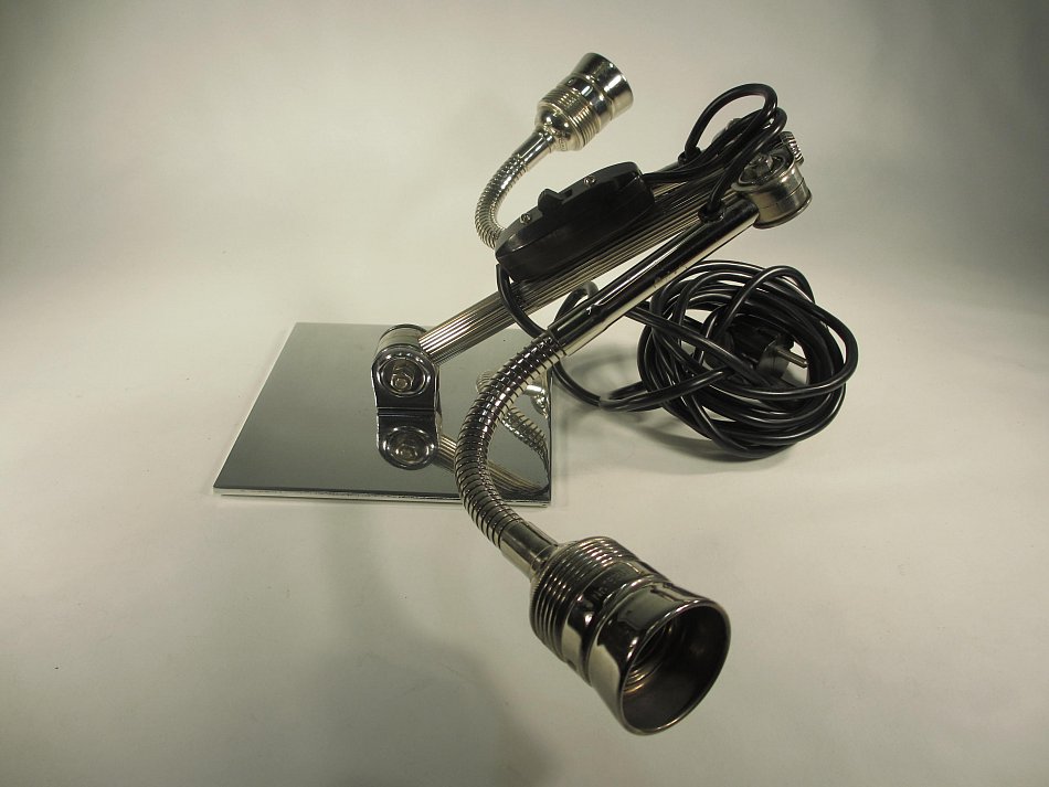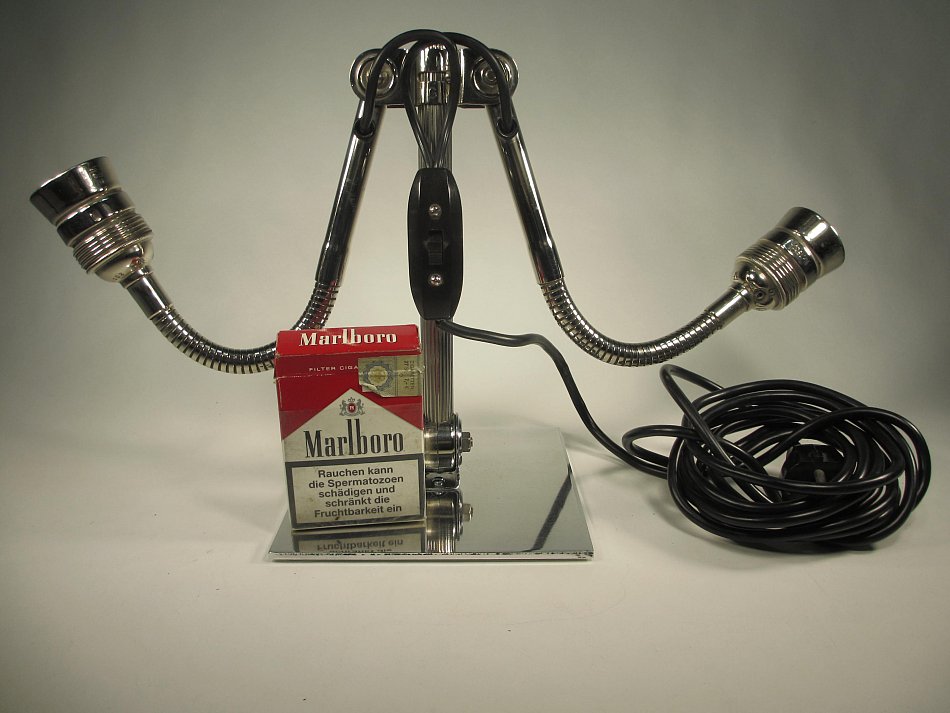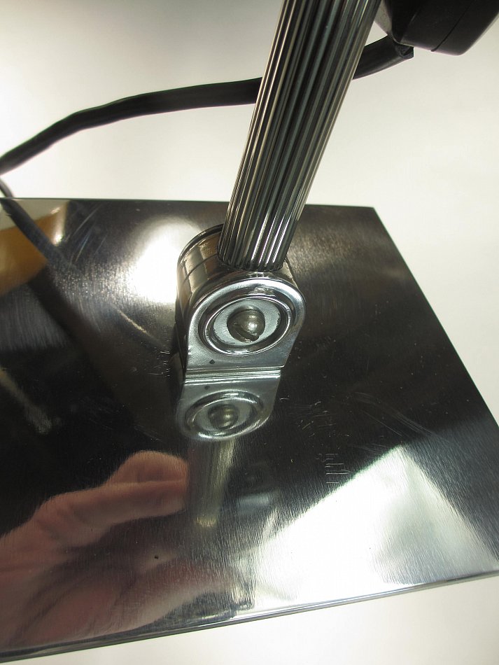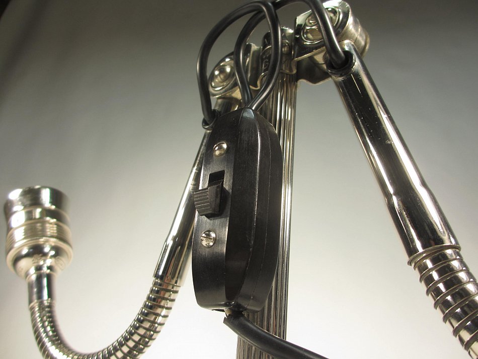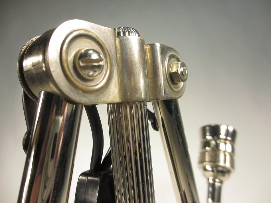 ALLES noch im Originalzustand! Diese Leuchte wurde komplett zerlegt und aufwändig gereinigt, und poliert! Sie hat noch einen wunderschönen Bakelit Schalter und Stecker! Ca. 200cm Kabel ist vorhanden. Der Alumium Standfuß dürfte nicht Original sein, er wurde nachträglich montiert.