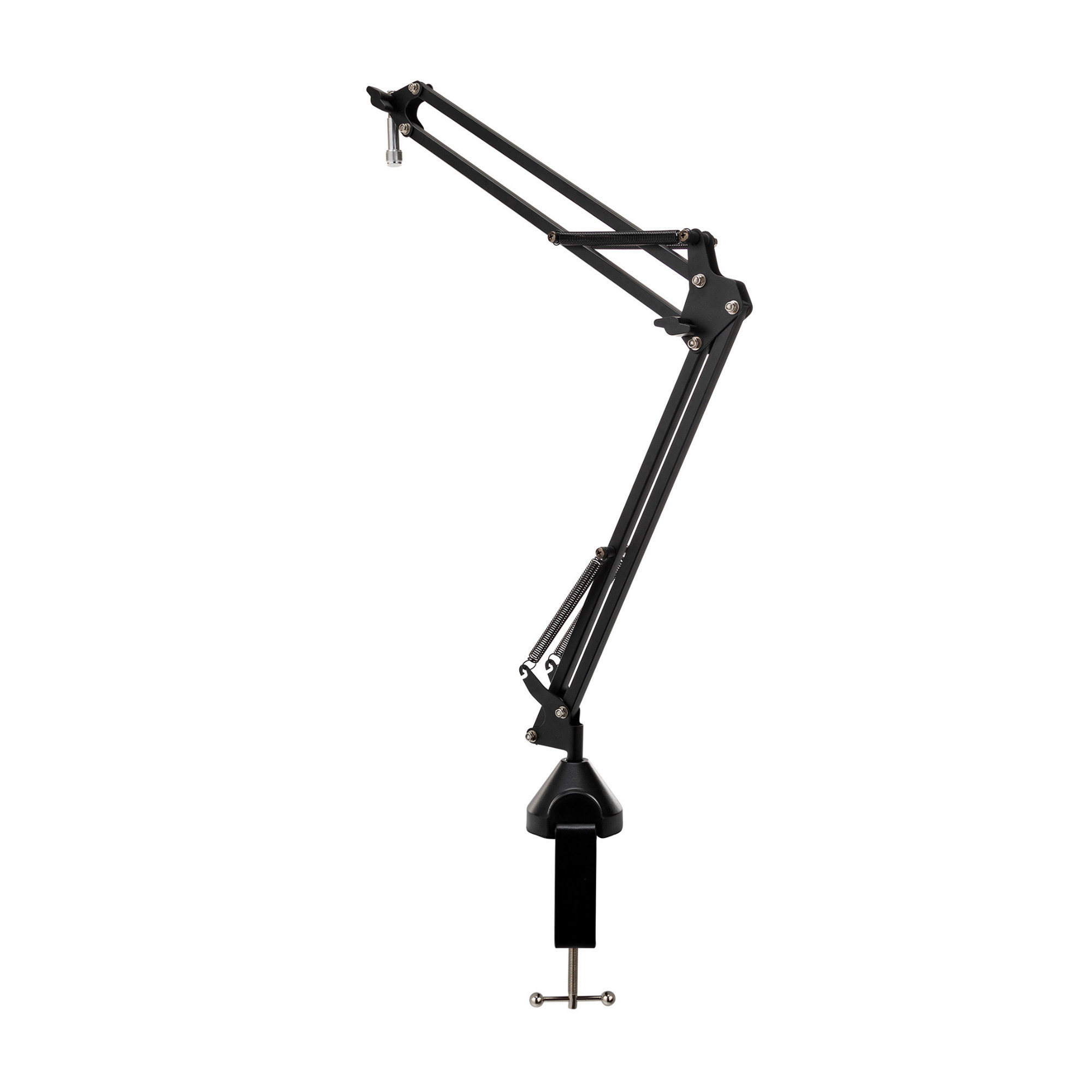 The FocusProAudio Desktop Boom Arm is an essential mic stand for singers, podcasters, voice actors, and streamers. It features 360-degree rotation, dual mounting options (clamp or floor stand), and easily adjustable suspension arms. Built from high-grade steel, it offers strong support with a high weight capacity and tension-locking knobs. Compatible with most mics via a 5/8 to 3/8-inch adapter, this compact stand ensures precise mic placement for recording, broadcasting, or live streaming.