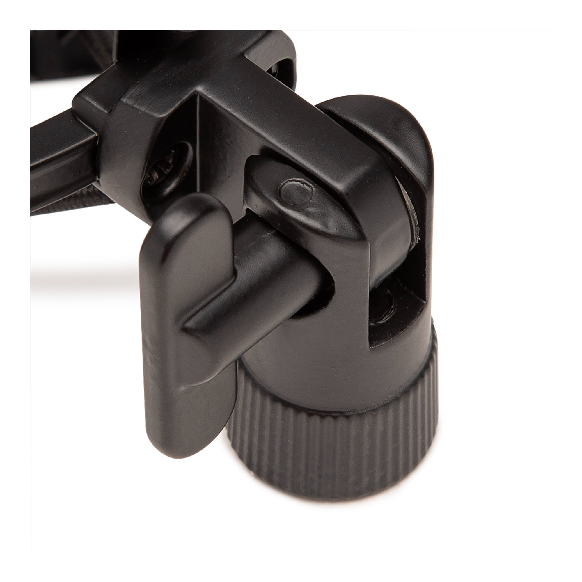 It features an adjustable stand holder and a padded clamp with a locking knob, ensuring optimal protection and security for your equipment. The knob allows for a 180-degree angle adjustment for precise microphone placement, enabling you to position it closer or further from your face, whether on-camera or off.