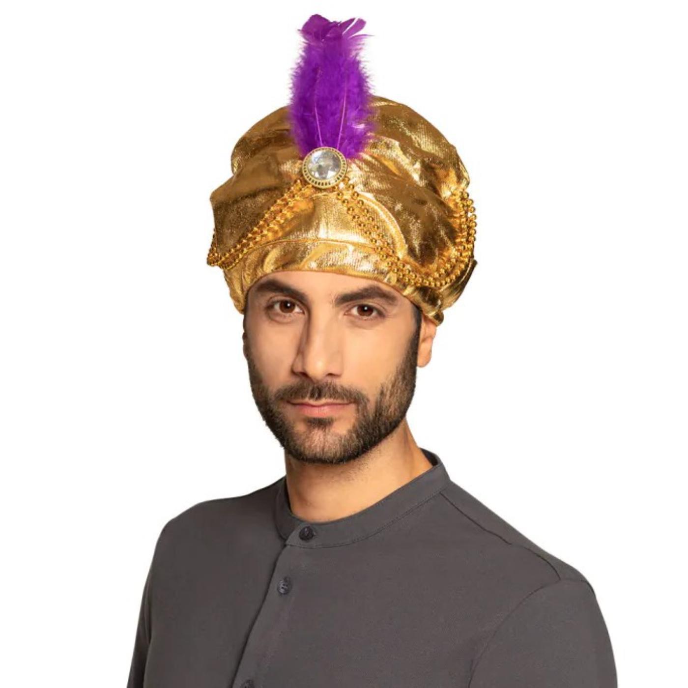 Description: Turbans are worn for a number of reasons, such as religion, as a protective coating from the sun and as a way to showcase wealth. This turban is great for accessorising a Sultan; a powerful ruler, a wiseman for a nativity scene or play, or as a character from the Disney movie Aladdin