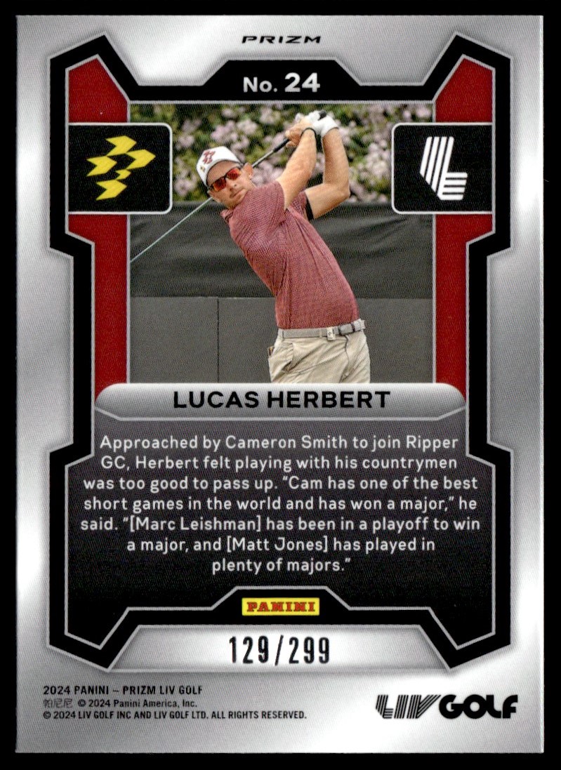2024 Prizm LIV Golf Sparkle Lucas Herbert 129/299 #24