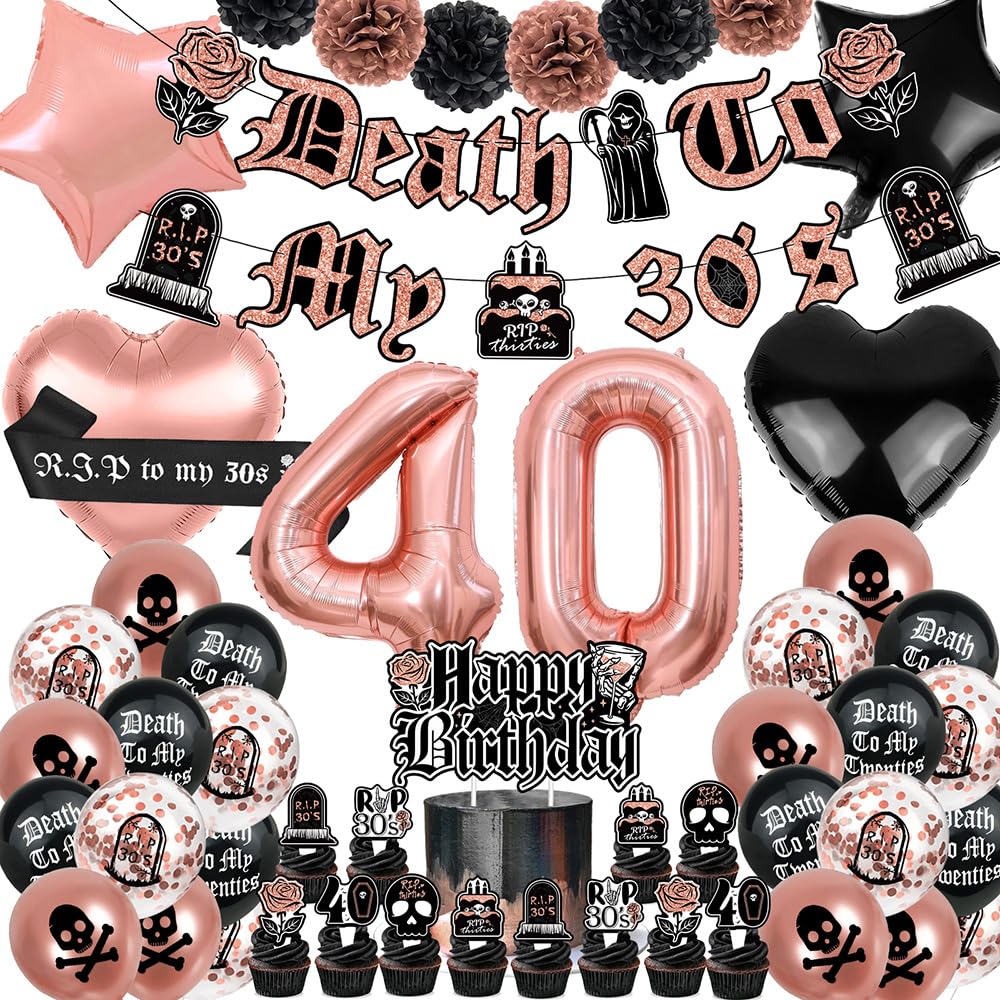 Death to My 30s Decorations, 40th Birthday Decorations for Her Black and Rose Gold, Rip to My 30s Birthday Decorations Funeral for My Youth 40th Birthday 40 Balloon Numbers Dirty Thirty Party Supplies