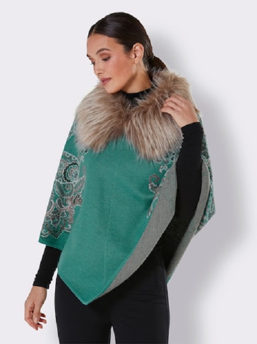 Poncho grün 36/40 Damen Creation L Kaschmir "smaragd-sesam" Gr.1 UVP:199€ S71