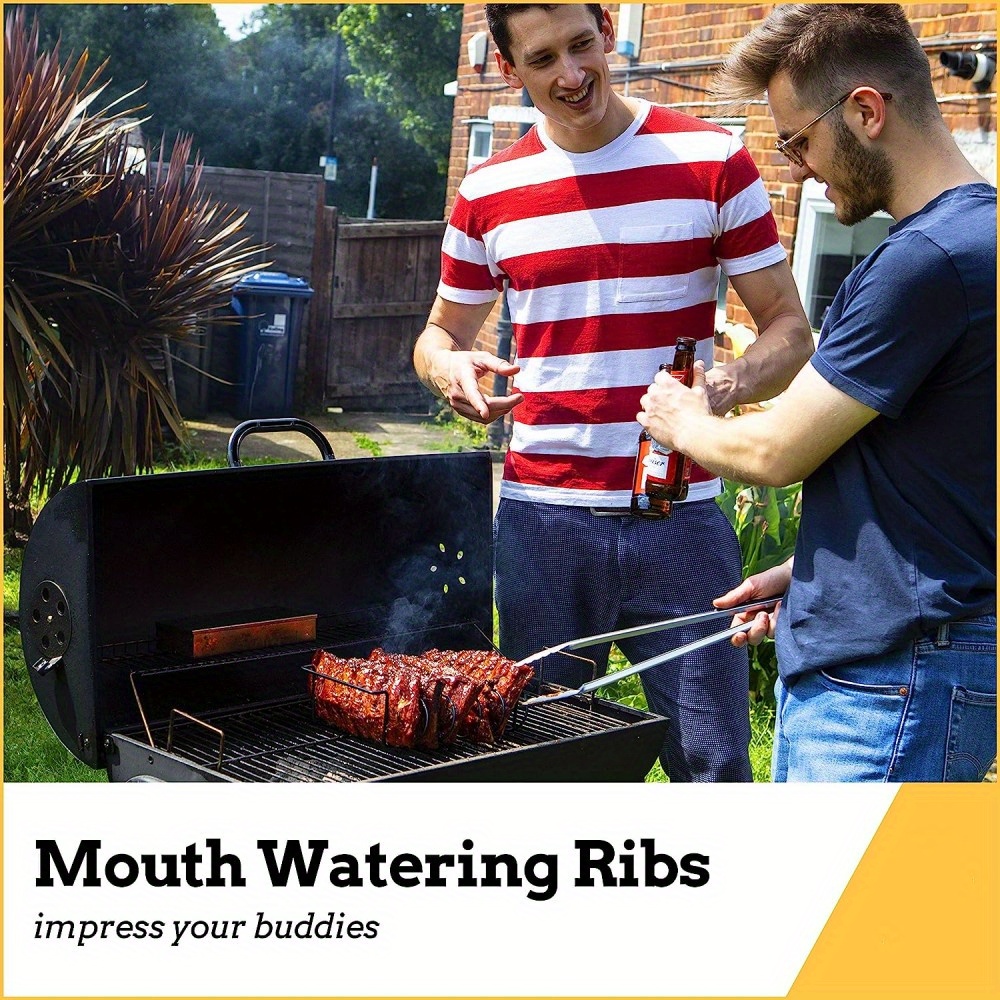 The barbecue rack is strong enough to keep even the largest ribs from tipping over the grill or smoker. The steel barbeque rack is easy to use and fits everything from small baby back ribs to jumbo beef ribs.
