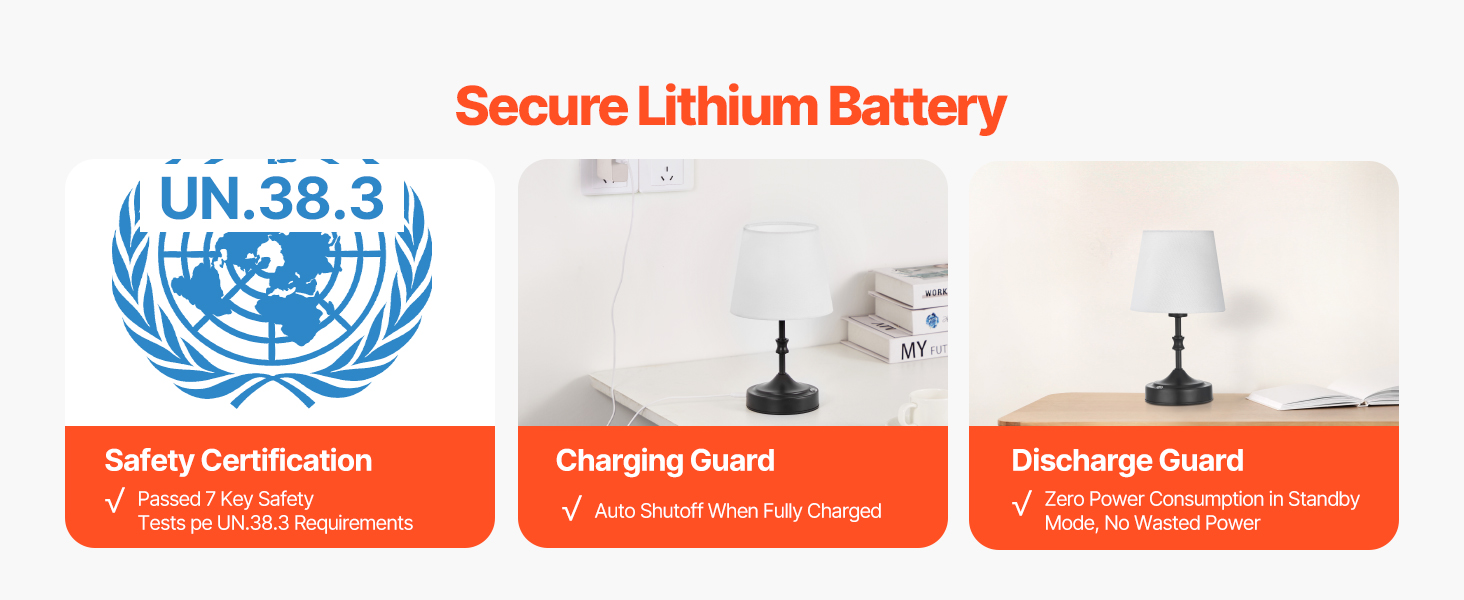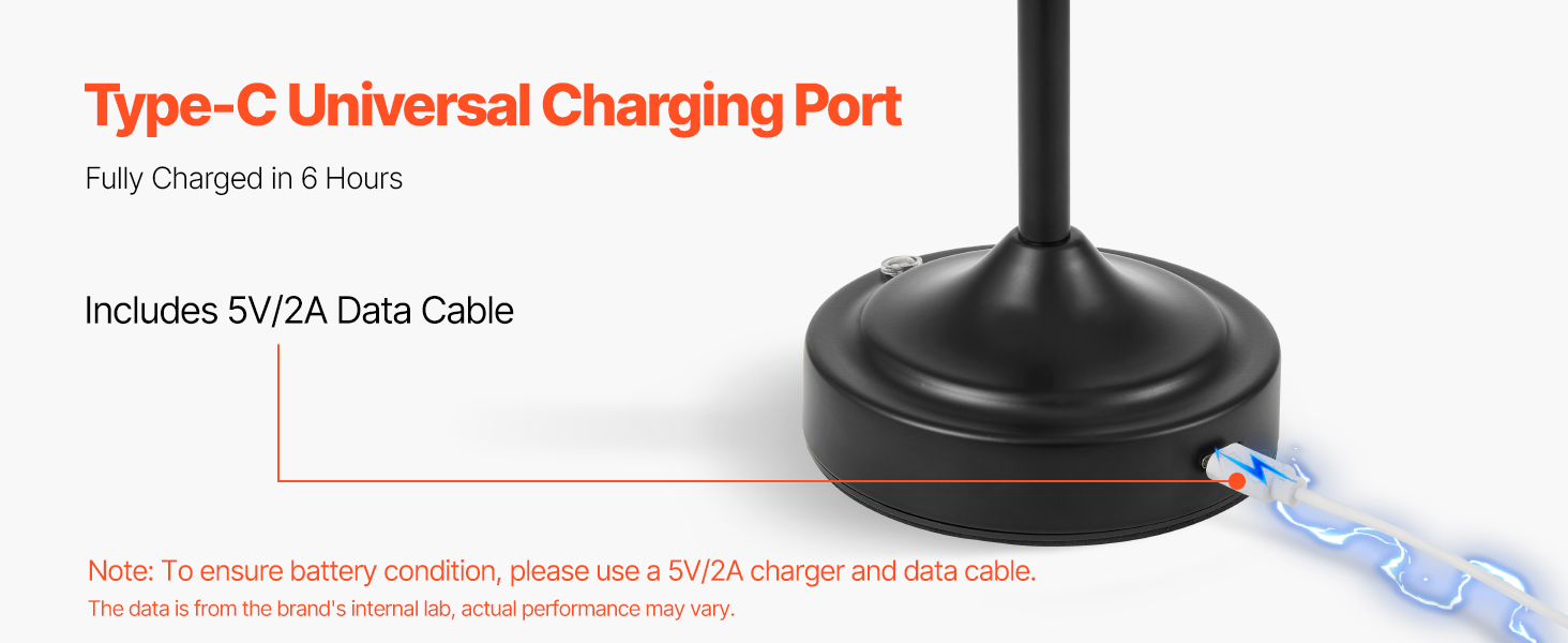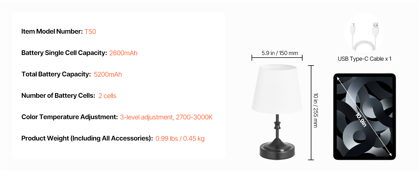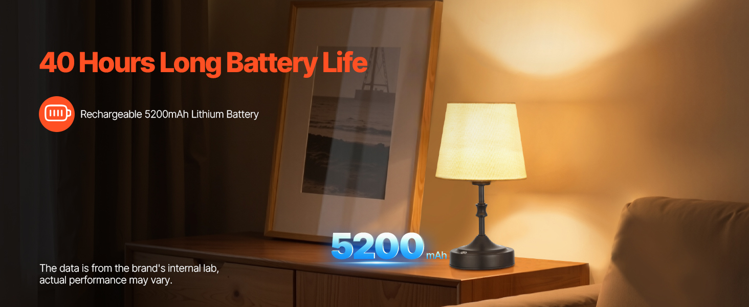 - Built-in Large Battery: The cordless table lamp comes with two 2600mAh rechargeable batteries, providing up to 8 hours of use on the bright setting and up to 40 hours on the low. Fully charges in 6 hours via the included Type-C cable