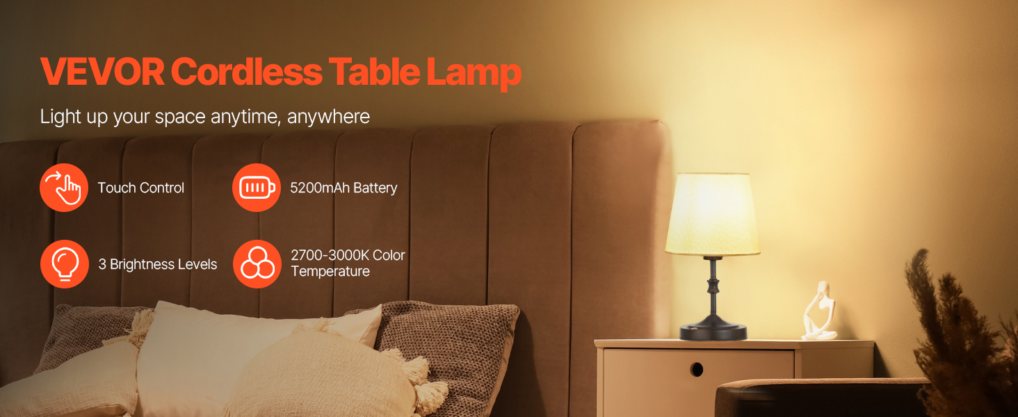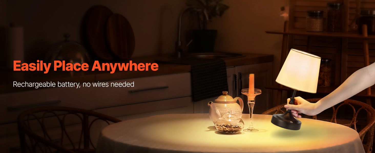 - Cordless & Portable: Built-in battery takes away the hassle of cords. The cordless lamp's lightweight design makes it easy to move, ideal for bedrooms, dining rooms, patios, outdoors, restaurants, bars, and campsites to create a warm, cozy atmosphere