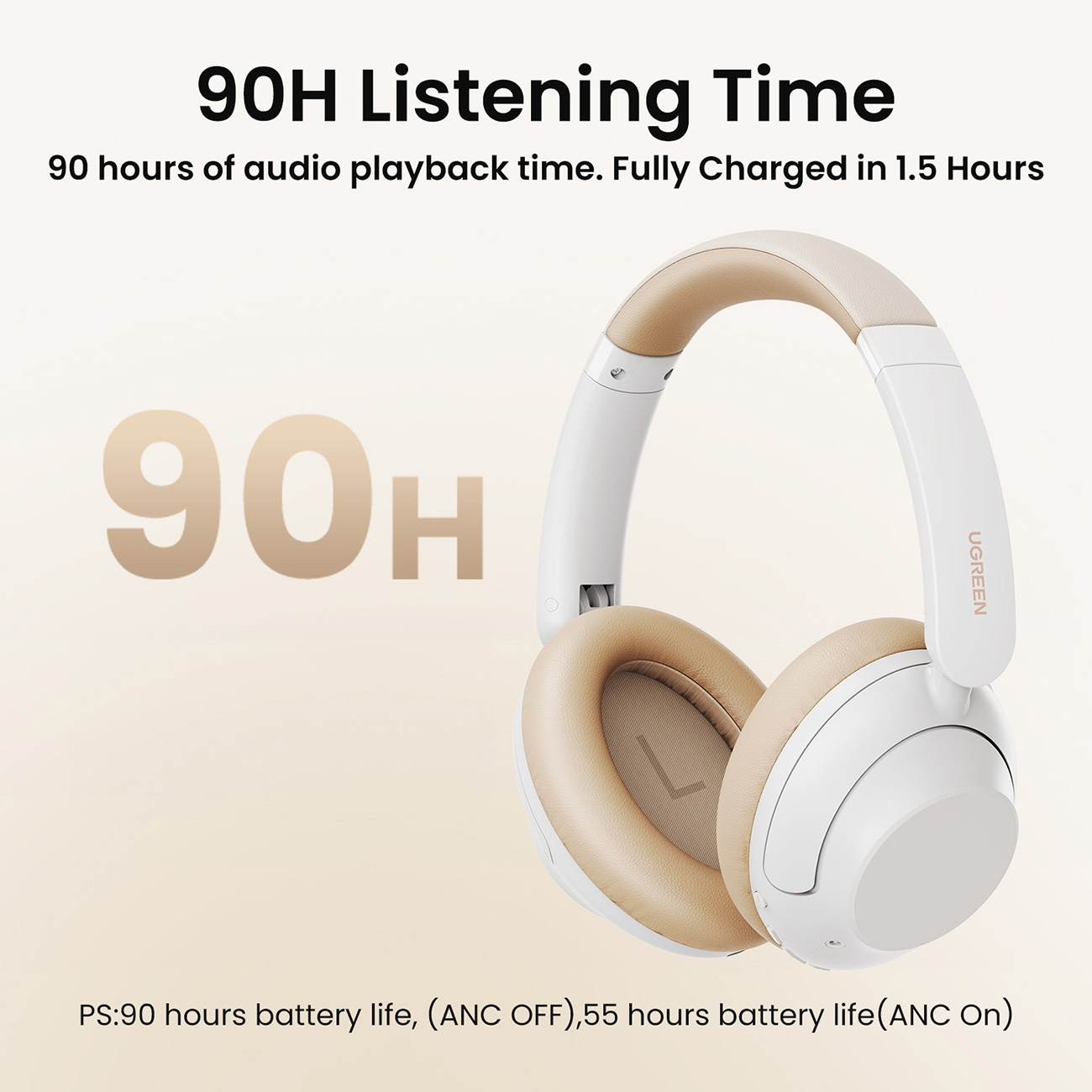 Cuffie Bluetooth Ugreen HiTune Max5 HP202 con ANC Ibrido - Colore Bianco