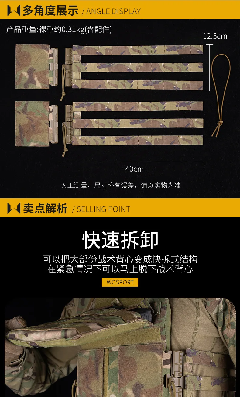② The tactical cummerbund features with 10 rows of PALS webbing for attaching Molle pouches or side SAPI pouches.