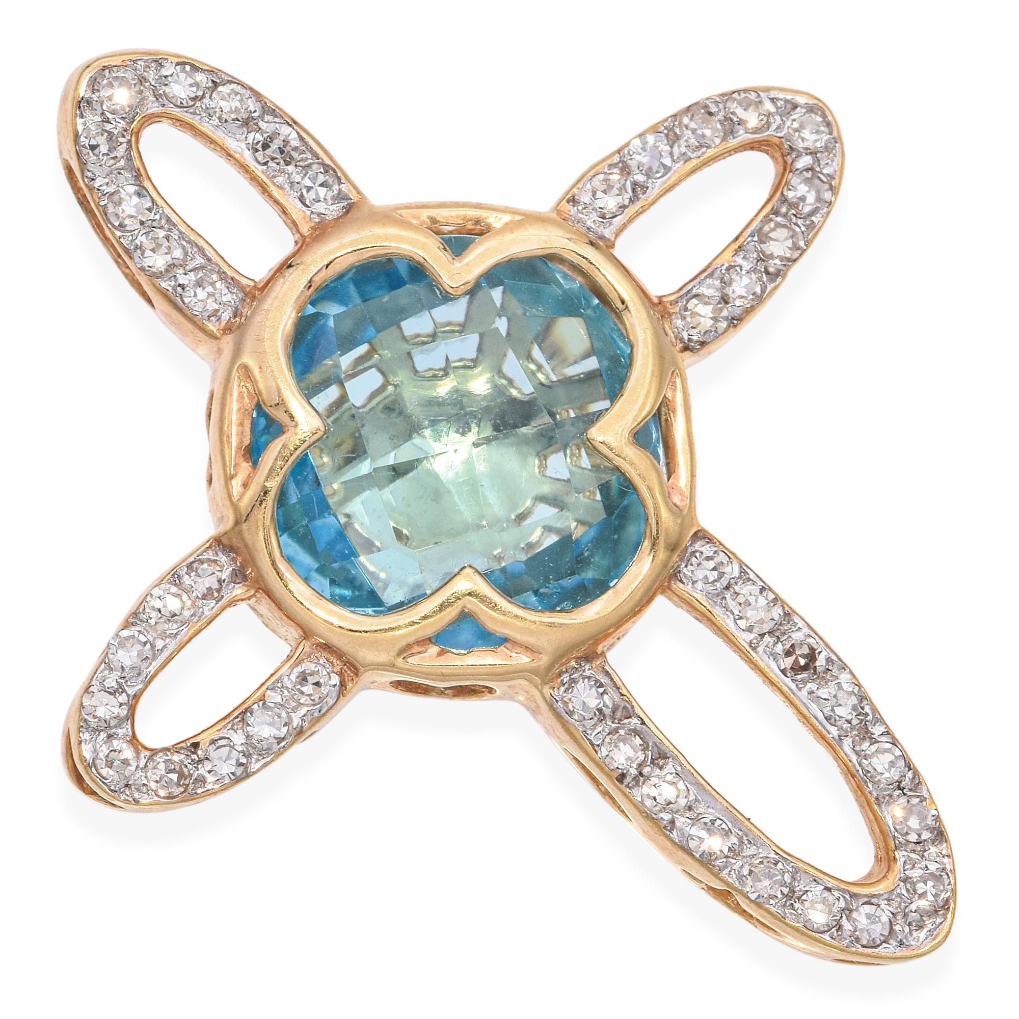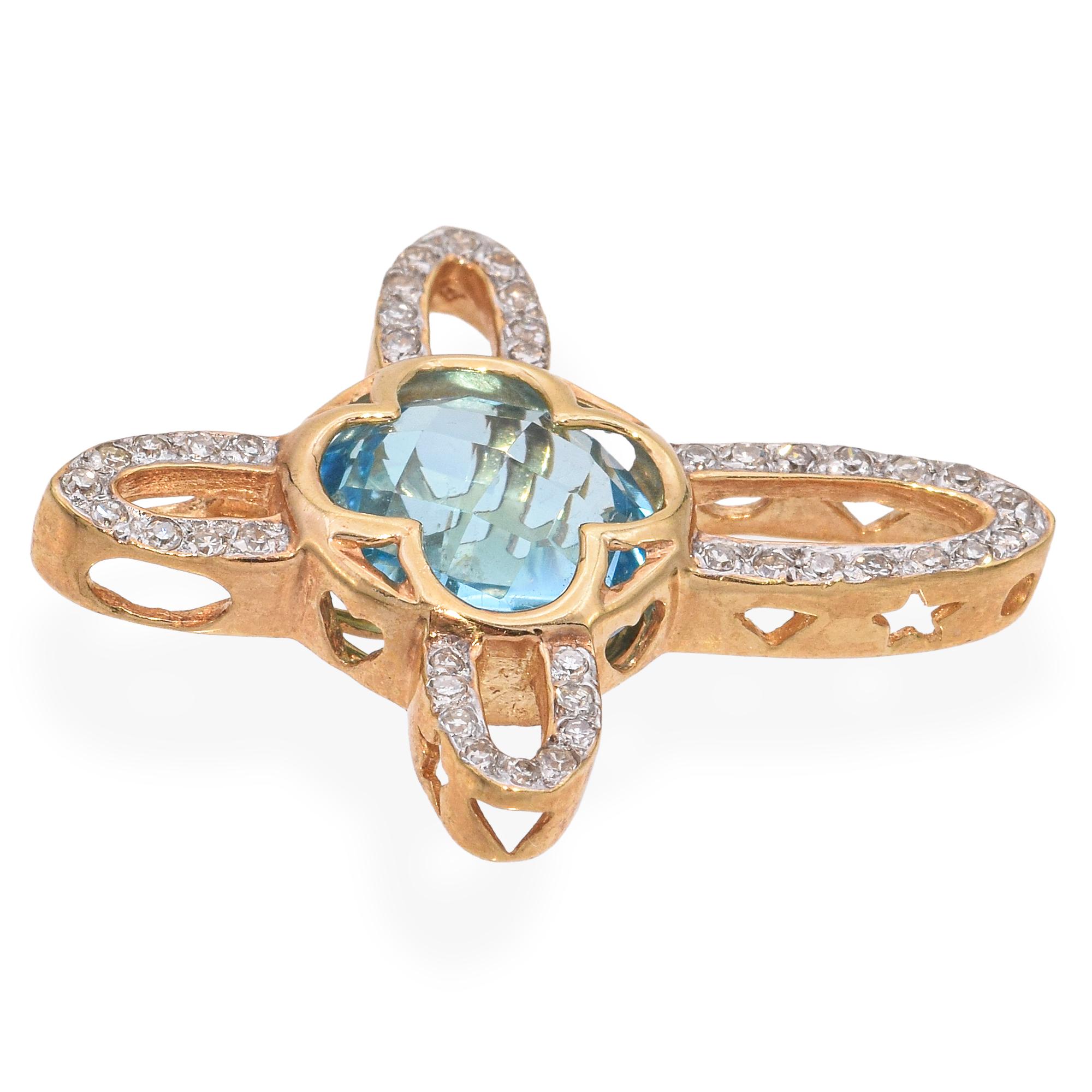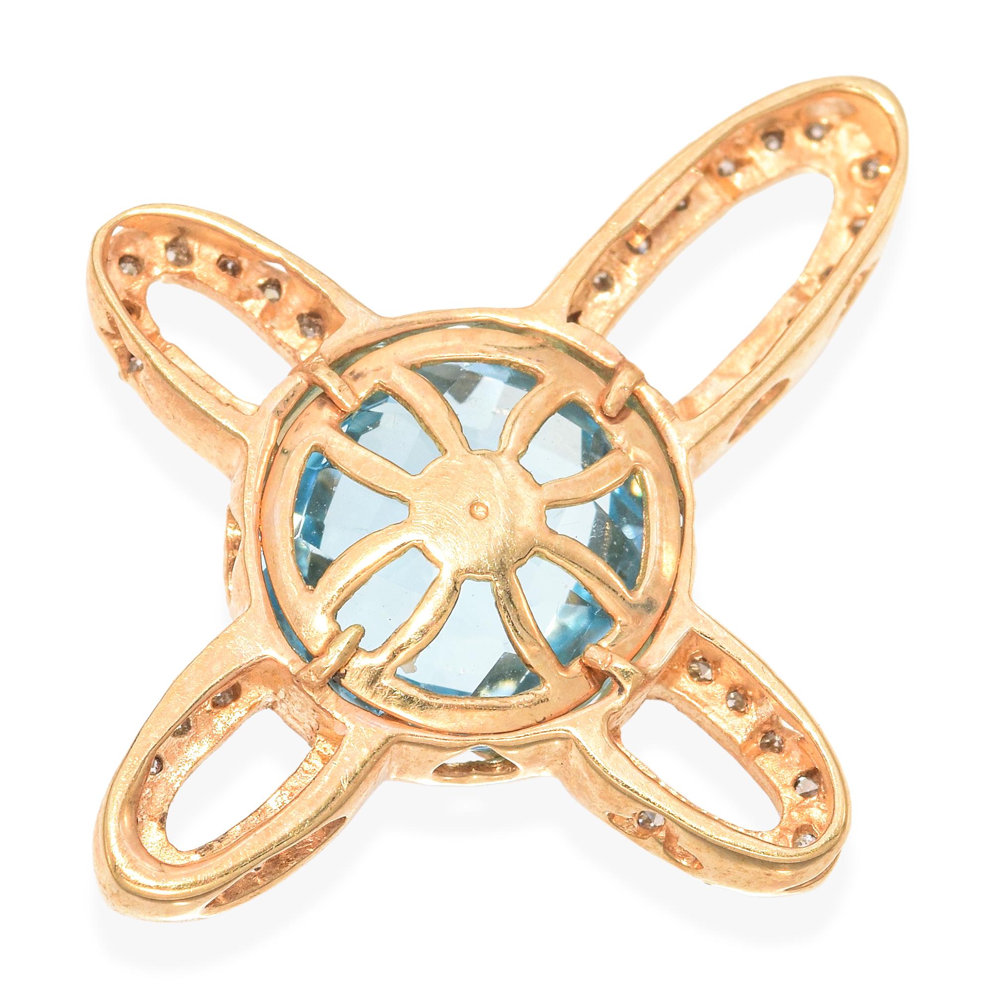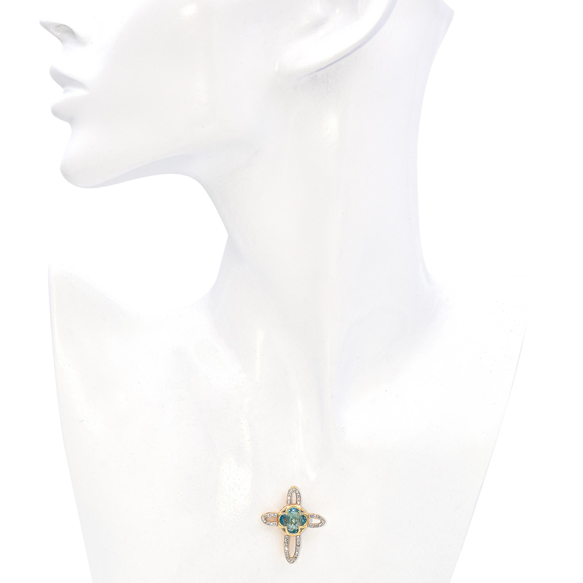 14k Yellow Gold Diamond and Topaz Cross Pendant