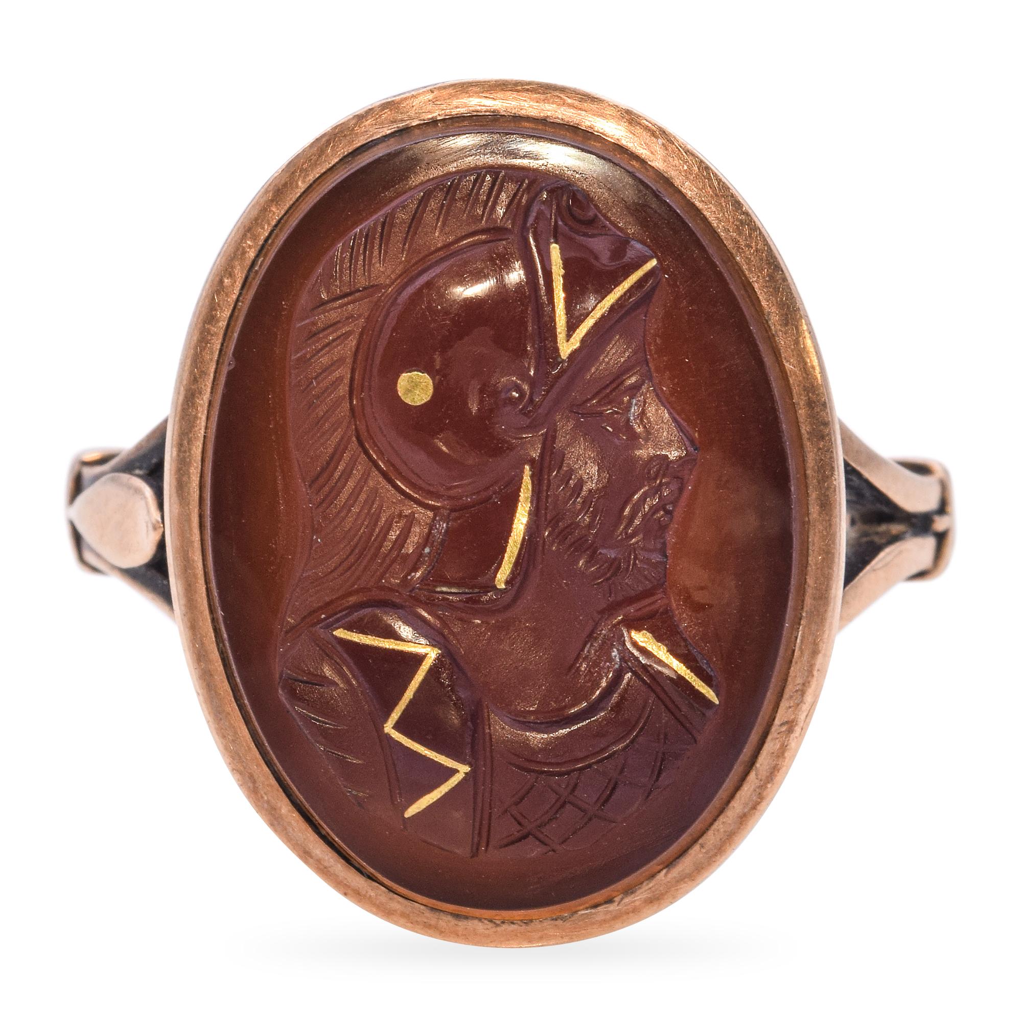 Antique Victorian Rose Gold Sard Intaglio Soldier Cameo Ring