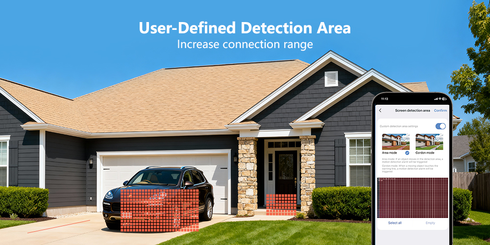 Jennov's Zone Detection: A smart feature allowing you to set specific areas for motion detection. Minimize false alarms and enhance surveillance accuracy by focusing alerts to designated 'zones' such as entrances or driveways.