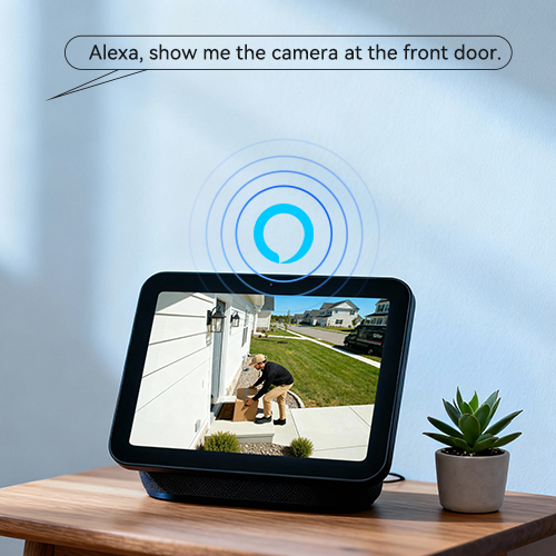 Works with AlexaThis security system is able to work with Amazon Alexa, allowing engaging voice control to take a glance at your rooms or yards.
