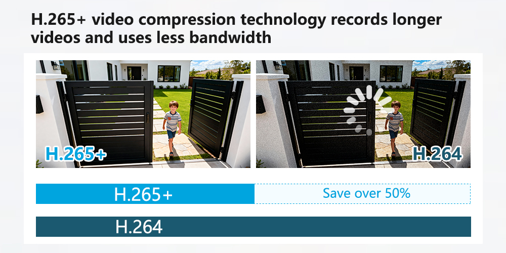 H.265+ Video Compression,More Save HDD Space Saving up to 50% of storage space than H.264 coding without losing 5MP clarity. You will enjoy smooth & fast live stream without latency. |