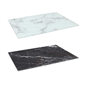 • Elegant Marble Design - The striking marble pattern not only adds a contemporary and sophisticated touch to your kitchen but also makes the surface easy to clean, maintaining its pristine appearance even after repeated use.• Non-Slip Rubber Bumpers - Equipped with padded non-slip rubber bumpers on the underside, this board stays securely in place during use, preventing slips and ensuring safe food preparation while protecting your work surfaces from scuffs.• Easy to Clean Surface - The glass surface is non-porous and easy to wipe clean, allowing you to remove any spills or stains with minimal effort, ensuring a hygienic and smooth food prep experience every time.