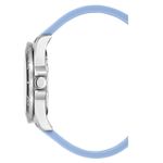 Das hellblaue Silikonarmband passt perfekt zu dem schwarzen Zifferblatt mit silbernen und schwarzen Akzenten, die für einen sportlichen und modernen Look sorgen.