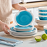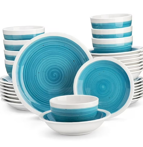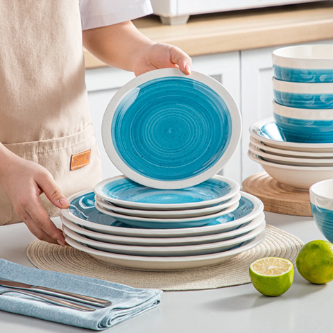 1. Stackable & Space Saving: The dinner set offers a conveniently stackable design, each plate can be neatly stacked together for compact storage in a cupboard or hutch. What’s more, it helps you save the storage space. You can stack the platters, dessert plates and bowls.