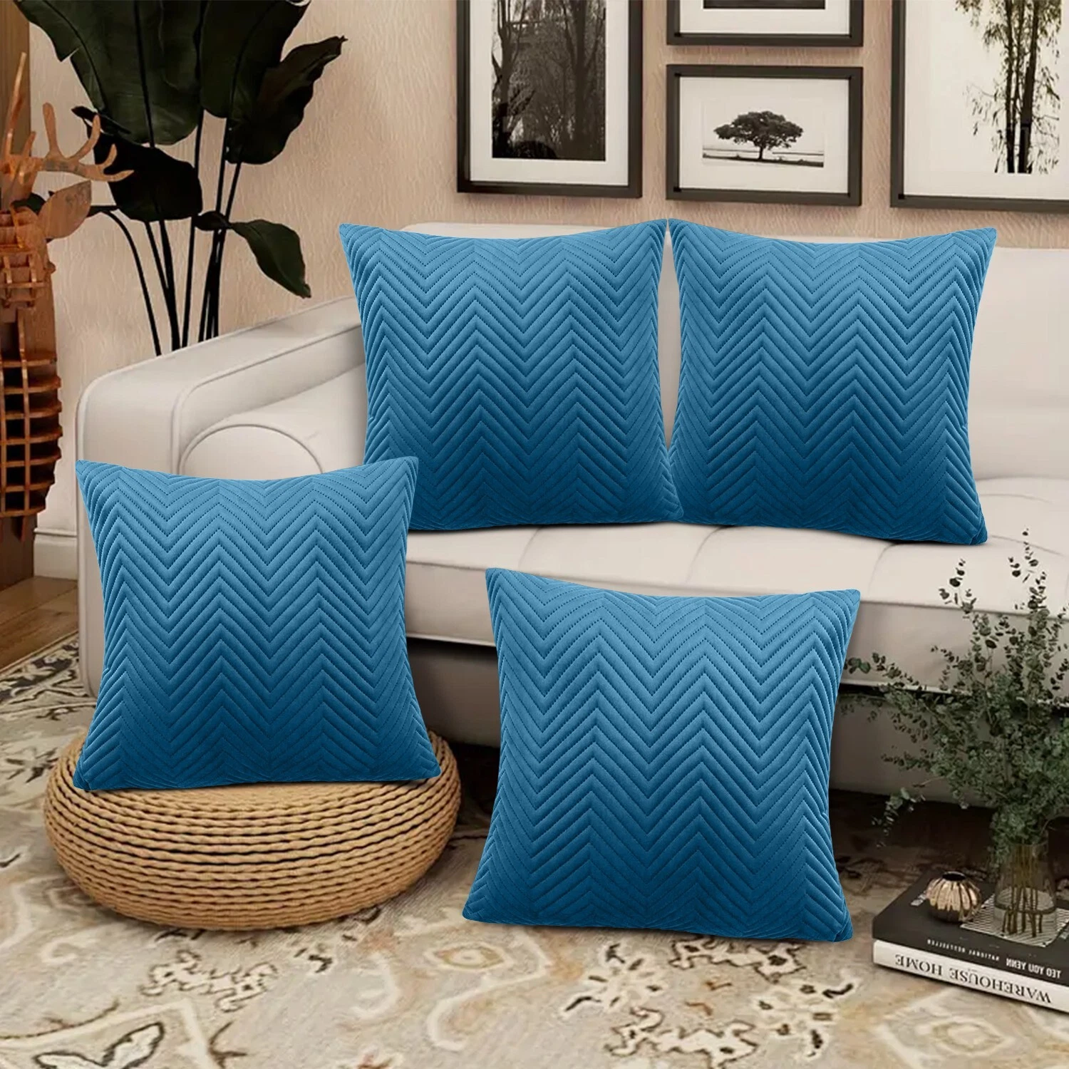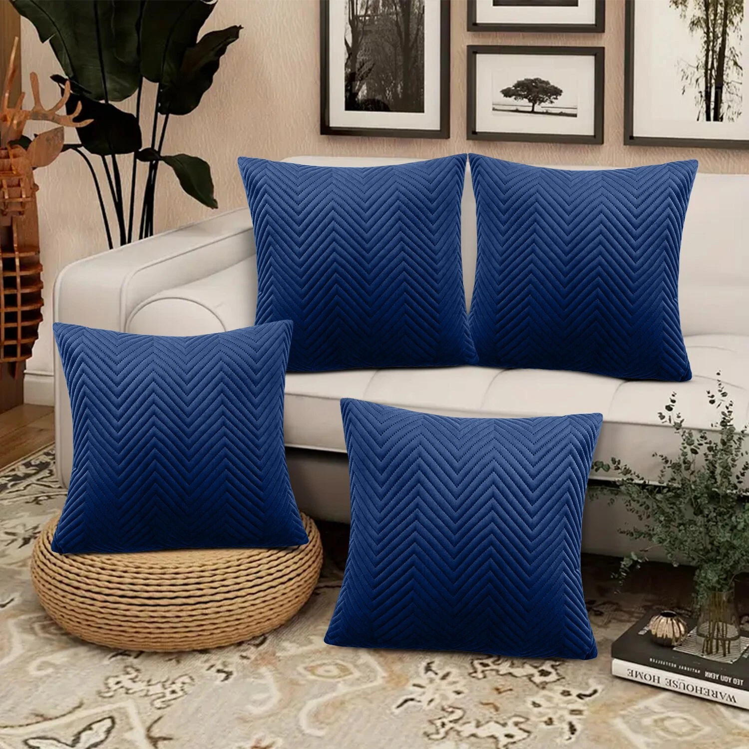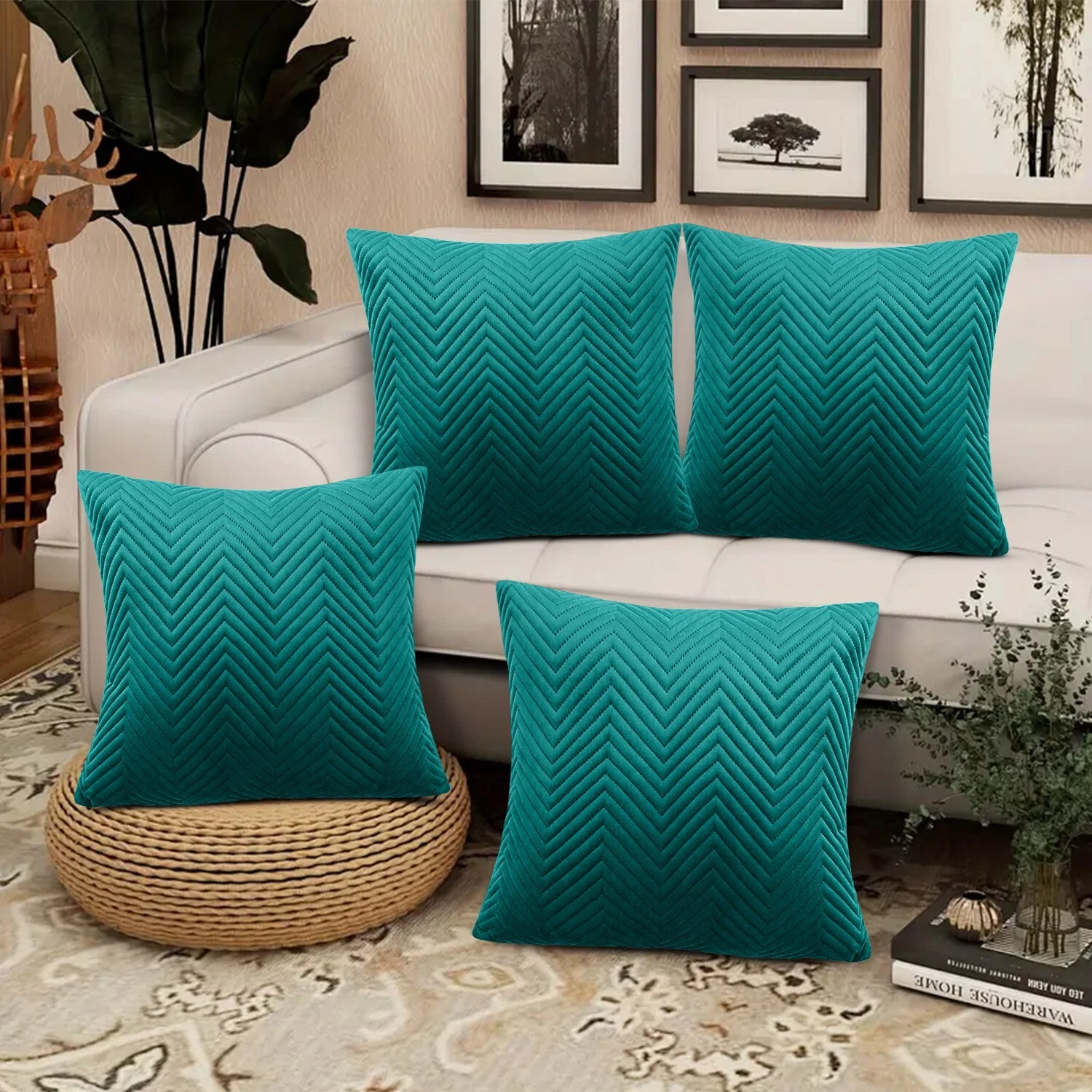 Add a touch of luxury to your home decor with these Embossed Velvet Cushion Covers from Moonlight Bedding. The 18 x 18 inch square covers are made from soft velvet material and separate cushion inner pads with hollowfibre fill, perfect for all occasions and any room in your home Indoor/Outdoor. The modern design features velvet stripes in various colours and a hidden zip closure for easy care. Choose from a pack of 4 cushion covers. These original cushion covers are suitable for both 18 x 18 inch cushion pads. The Embossed Velvet Cushion Covers are a must-have for anyone looking to add a touch of fashion and luxury to their home decor, from early 20th century to modern era styles.