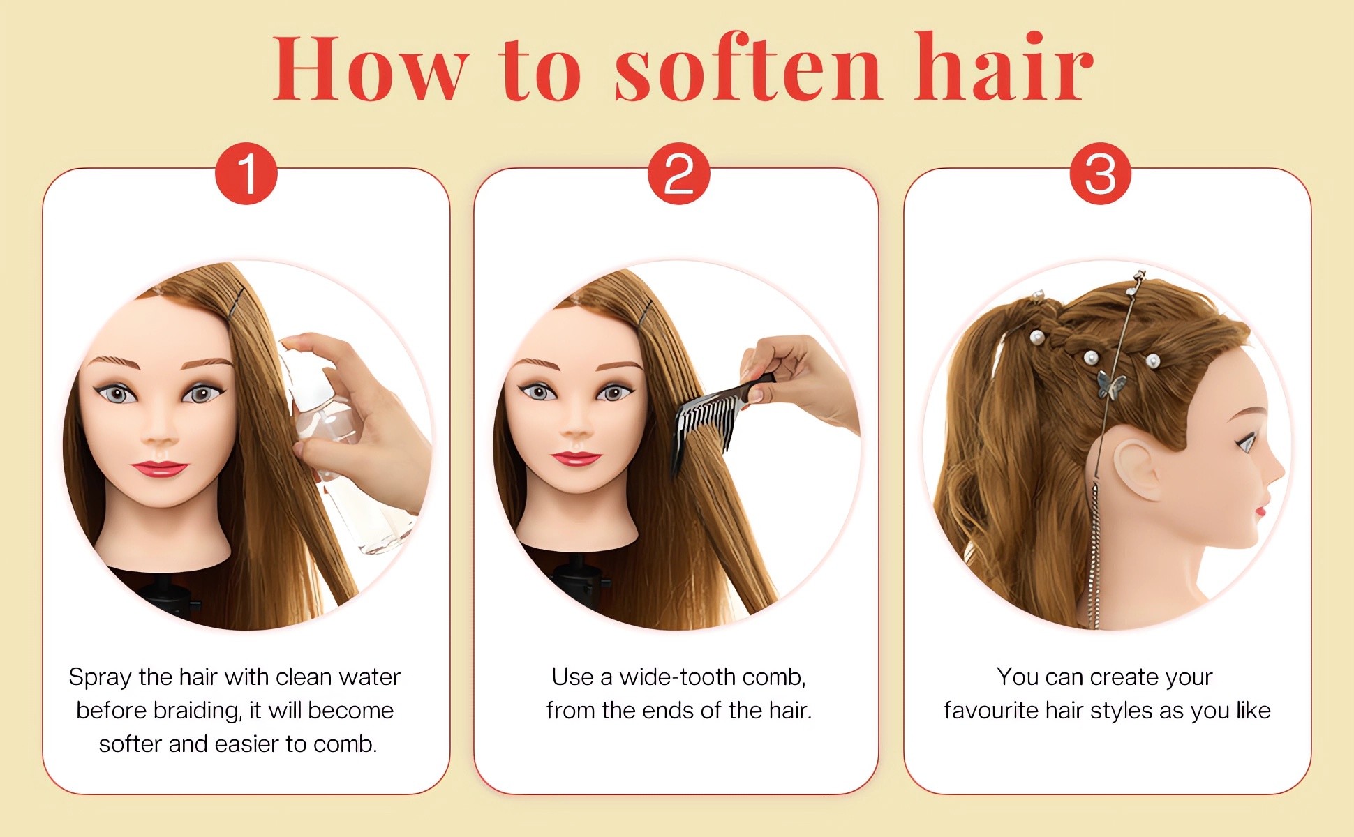 【Enthaltenes Zubehör】 – Wird mit einem Frisierkopf-Ständer und einer Tischklemme für einfache Anwendung geliefert. Enthält zusätzlich ein DIY-Flecht-Set für mehr Kreativität.