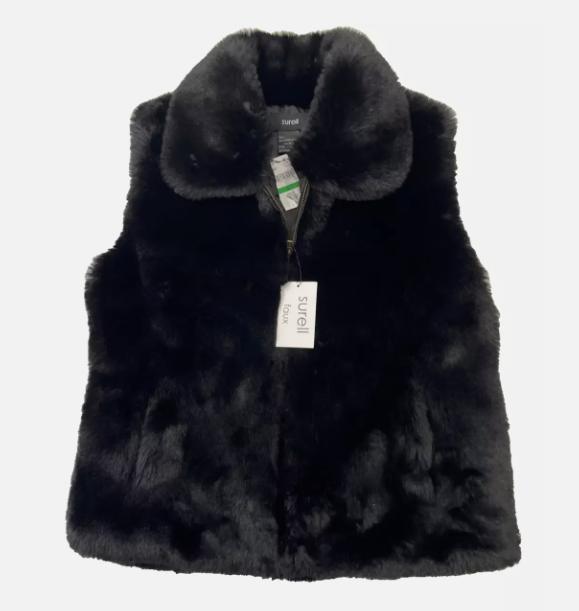Surell women's Black Faux Fur full Zip Vest size small