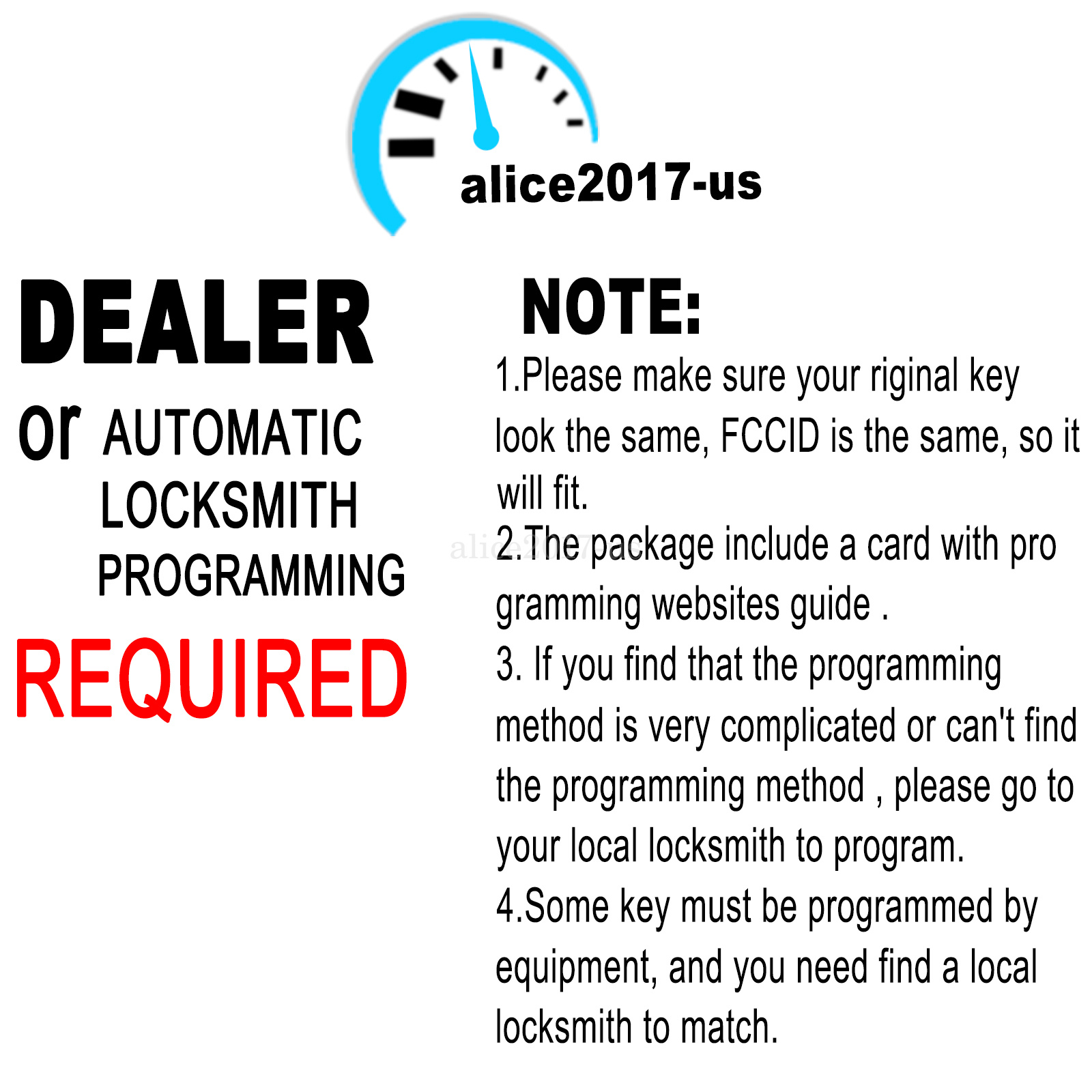 This remote must be professionally programmed when received by a local automotive locksmith. We do not recommend going to a dealer, as they may decline programming an aftermarket remote for you. Emergency insert key also needs to be cut