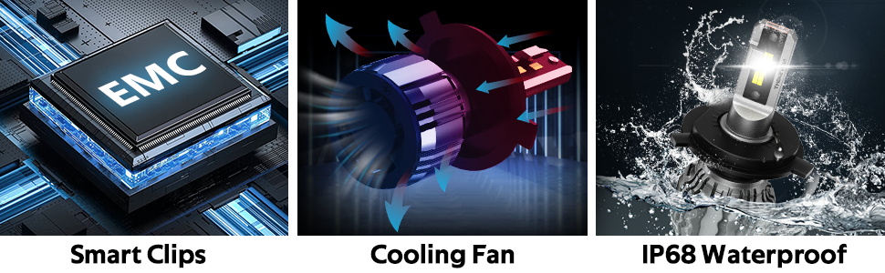 🚗【Durable than halogen or fanless bulbs】NOVSIGHT 9005 9006 high low beam LED bulbs with 100% corrosion resistant, fast rotation speed and large ventilation fan design that prevents and recudes the chances of overheating. Due to the high temperature operating environment, fanless design led bulbs will easily burn out.