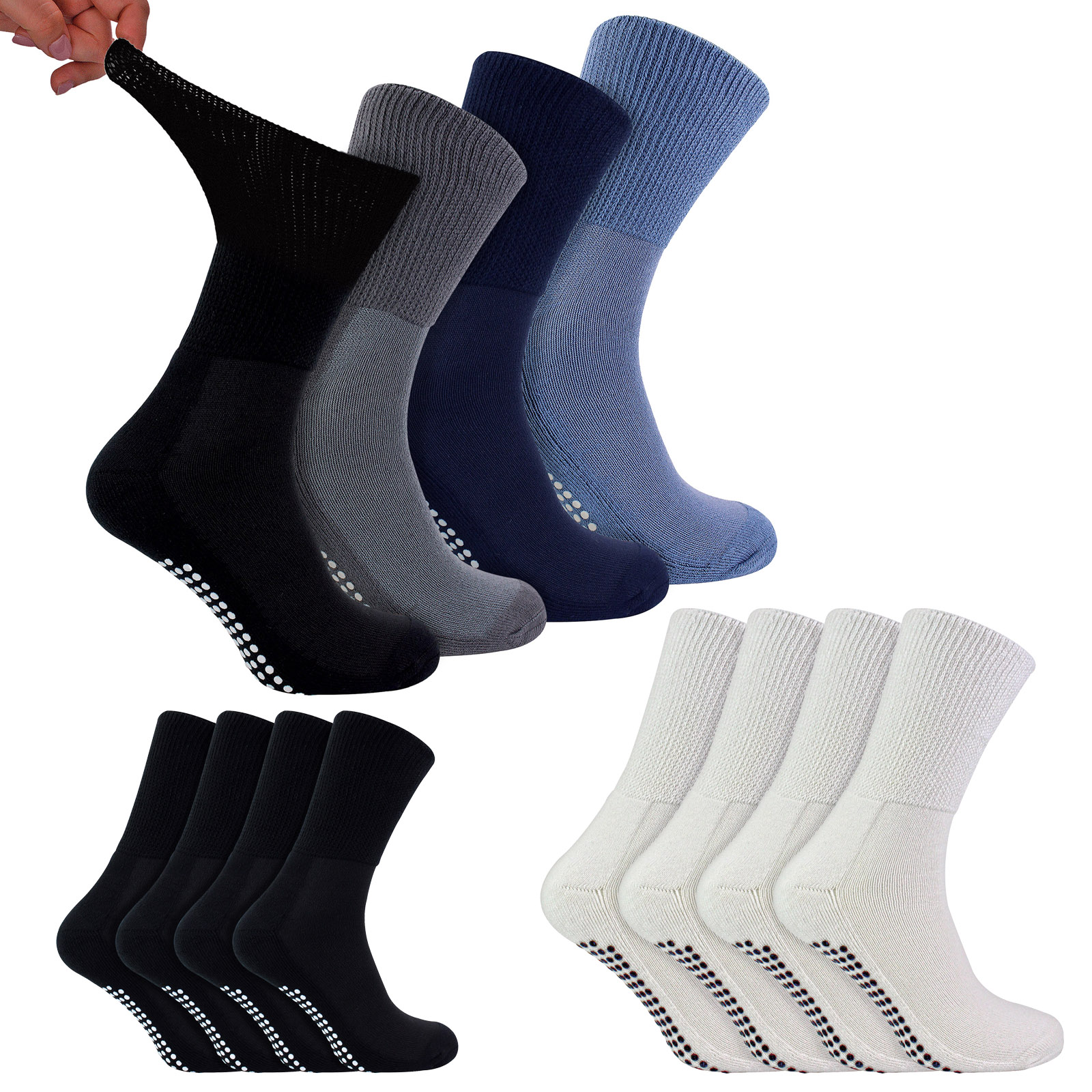 4 Pack Diabetic Non Slip Socks With Grips | Dr.Socks | Extra Wide Socks