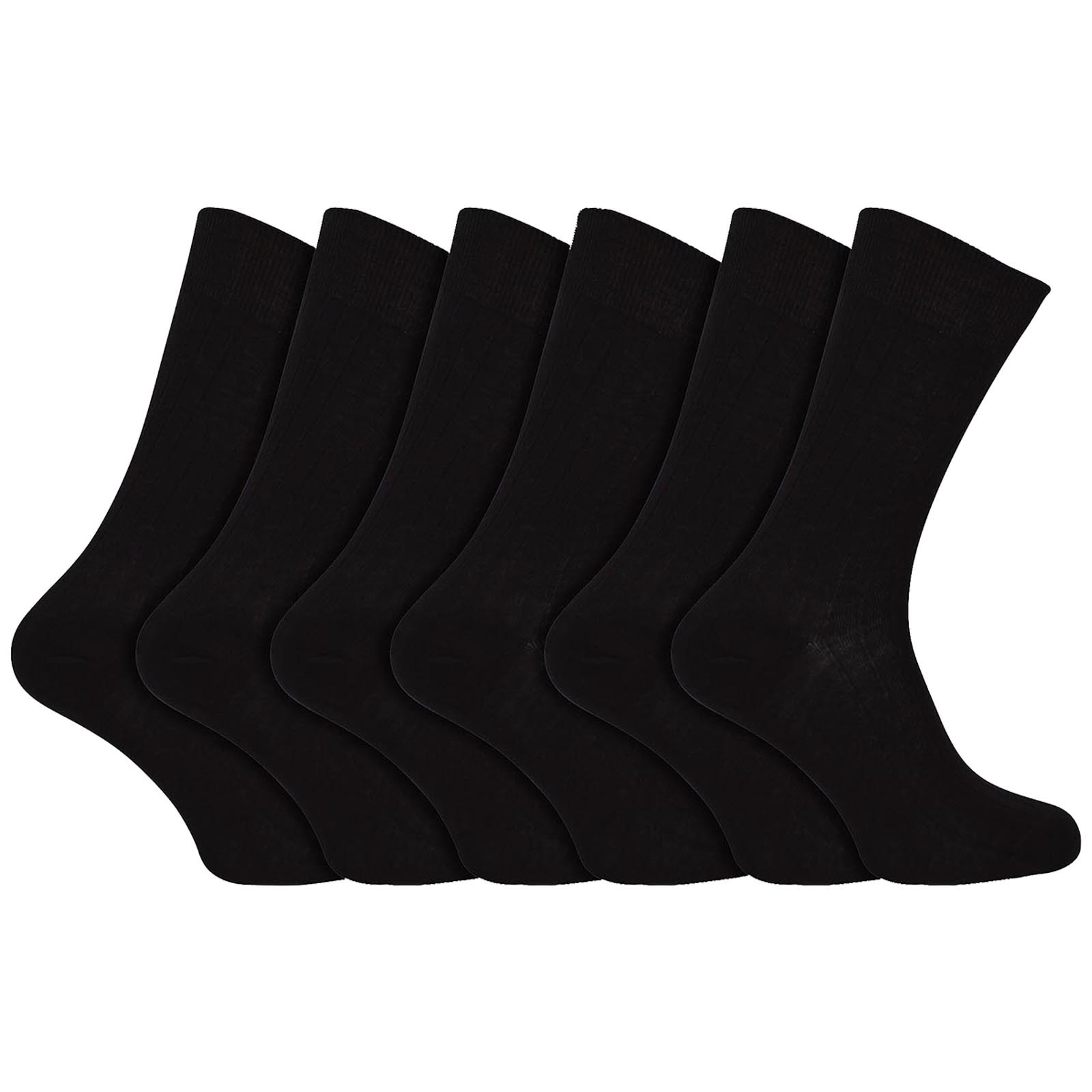 12 Pair Multipack Mens Ribbed Seamless Egyptian 100% Cotton Socks in Black