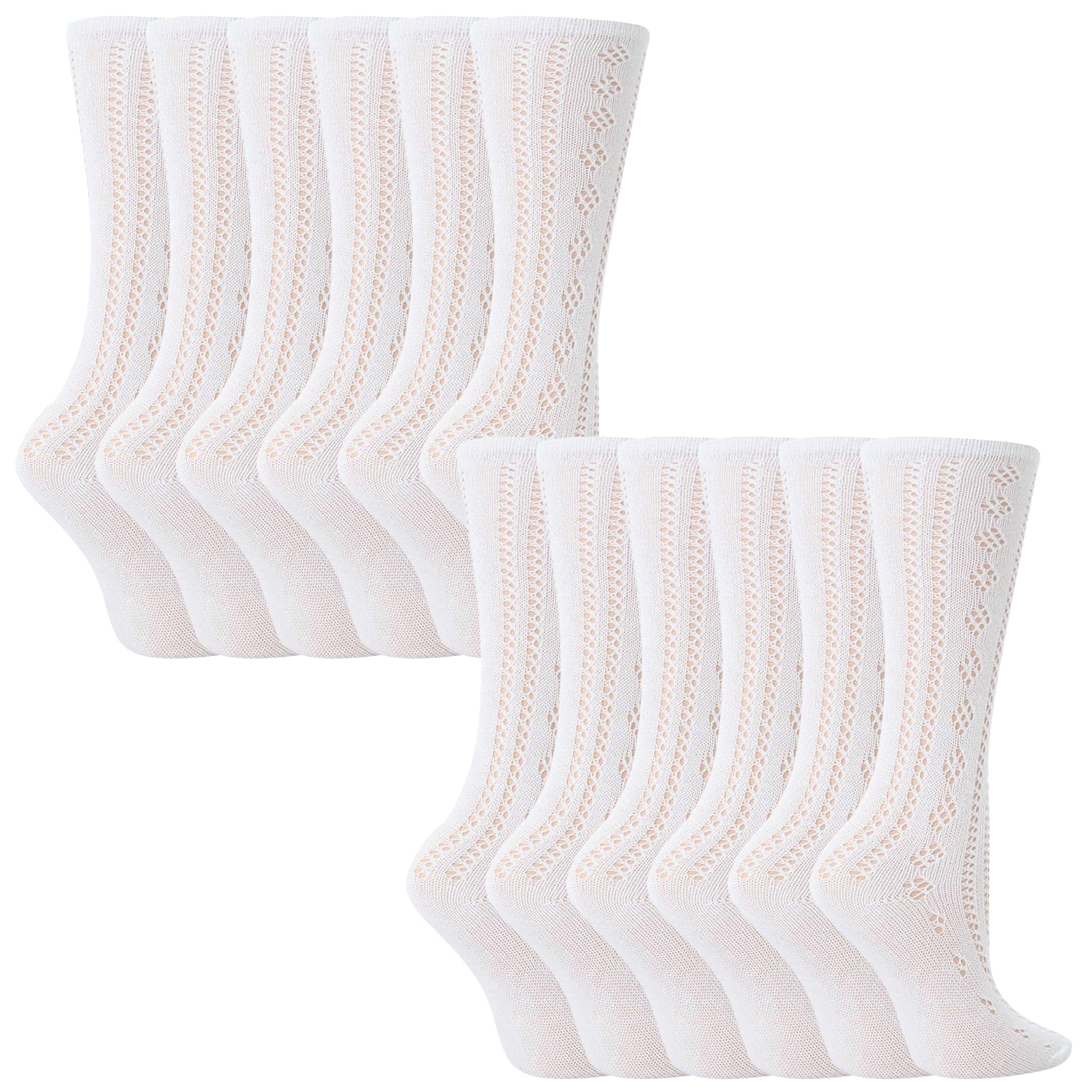 12 Pack Girls Cotton Rich Knee High White Uniform Socks