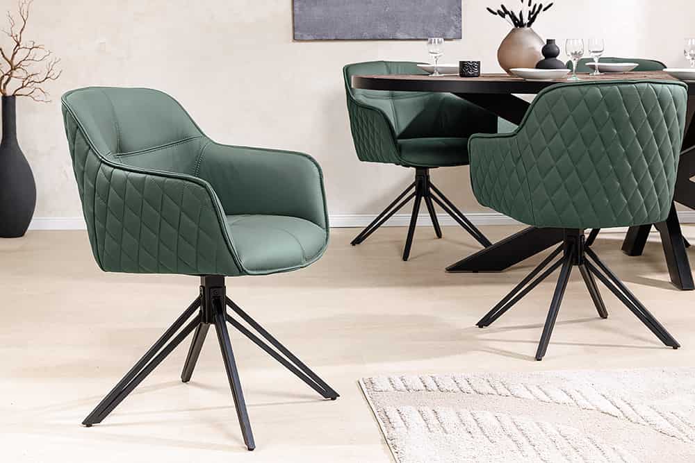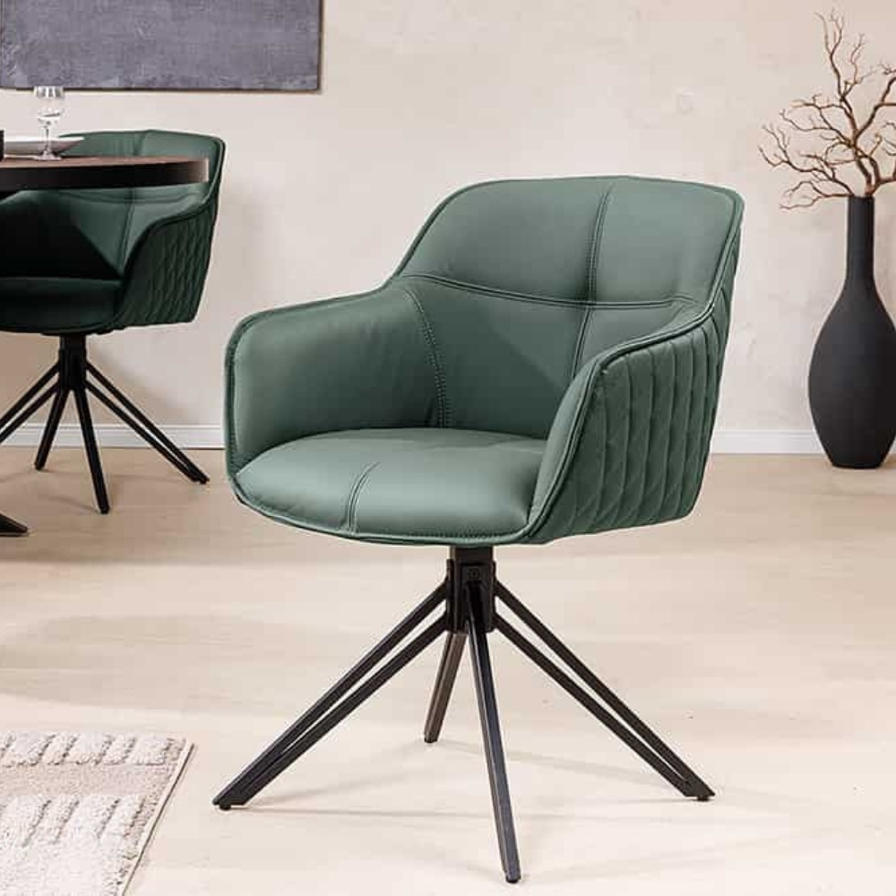 Dieser elegante Lederstuhl in Grün ist nicht nur ein Möbelstück, sondern ein Statement für Deinen exquisiten Geschmack. Lass Dich von der Kombination aus grünem Echtleder und robustem schwarzen Metallgestell begeistern. Der HORA passt sich perfekt Deinem Lifestyle an - ob im Home Office, am Esstisch oder als Akzent im Wohnbereich. Genieße maximale Flexibilität dank der 180°-Drehfunktion. Die bequemen Armlehnen sorgen für optimalen Halt und Entspannung. Mit seiner ergonomischen Form unterstützt der HORA Deine natürliche Sitzhaltung und macht lange Sitzungen zum Vergnügen.