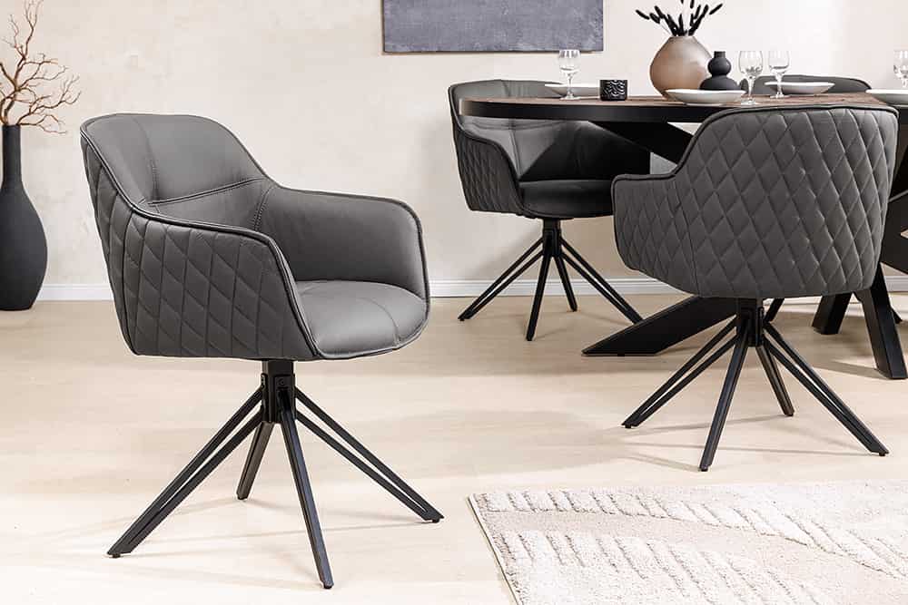 Dieser elegante Lederstuhl in einem klassischem Grau ist nicht nur ein Möbelstück, sondern ein Statement für Deinen ganz besonderen Geschmack. Lass Dich von der Kombination aus Echtleder in Grau und dem robustem schwarzen Metallgestell begeistern. Der HORA passt sich perfekt Deinem Lifestyle an - ob im Home Office, am Esstisch oder als Akzent im Wohnbereich. Genieße maximale Flexibilität dank der 180°-Drehfunktion. Die bequemen Armlehnen sorgen für optimalen Halt und Entspannung. Mit seiner ergonomischen Form unterstützt der HORA Deine natürliche Sitzhaltung und macht lange Sitzungen zum Vergnügen.