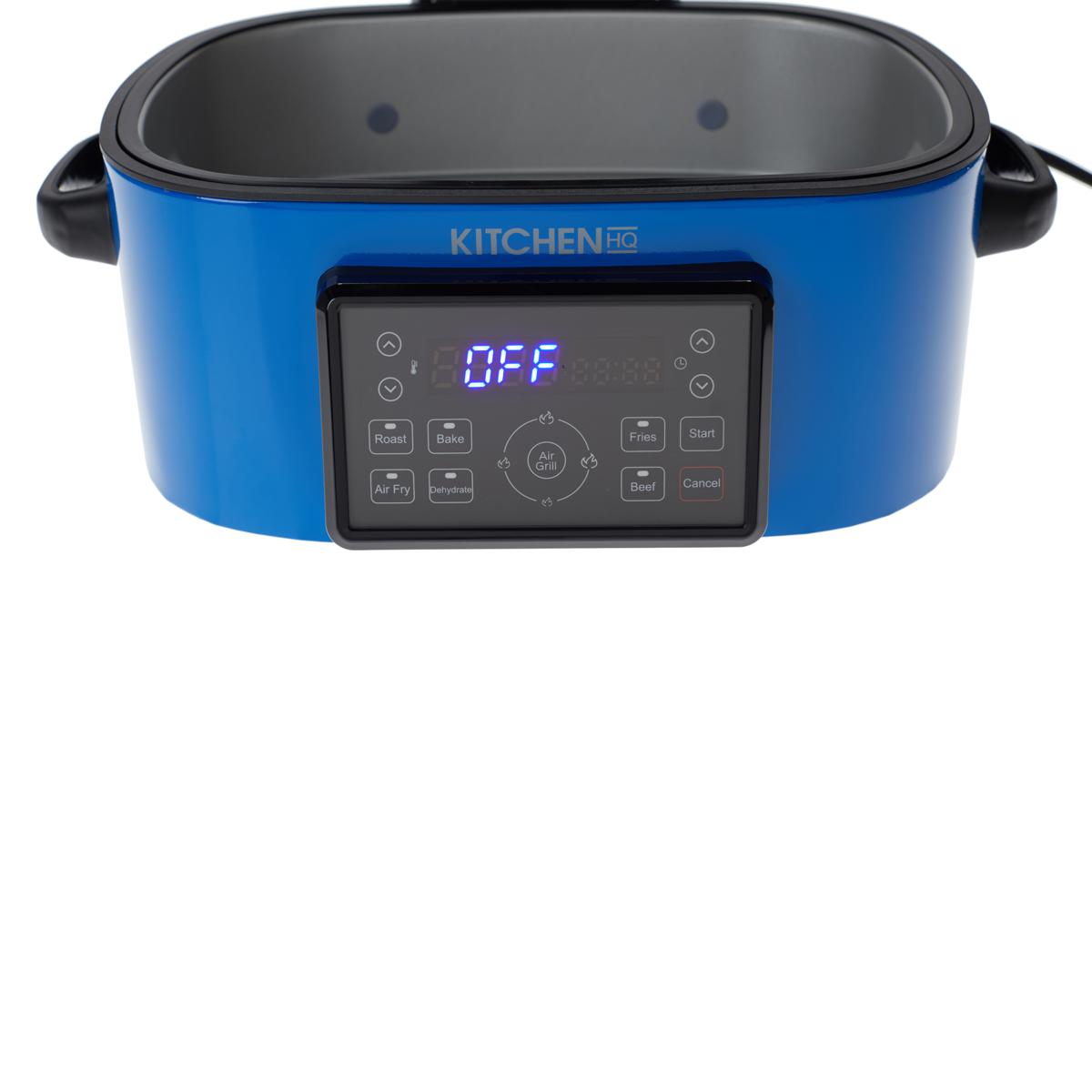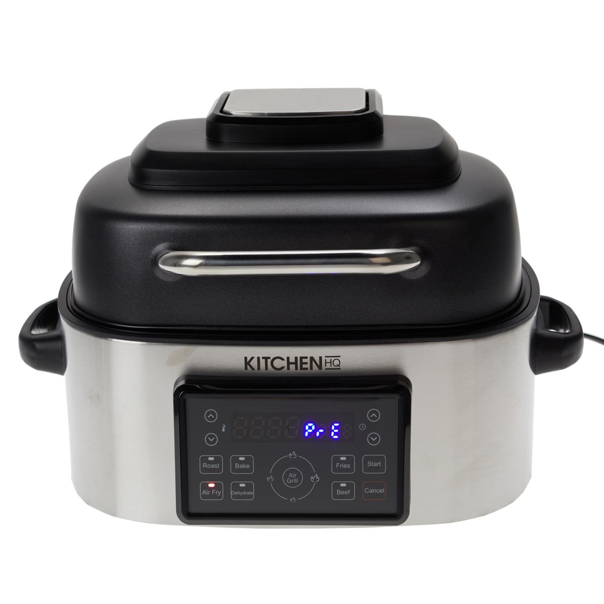 The Kitchen HQ 7-in-1 Air Fryer Grill will be the only thing you'll need on your countertop, replacing your grill, air fryer, dehydrator, oven, and much more. It's easy to use and boasts a large 6.5 qt. capacity — perfect to create meals large and small. Features seven preset functions: Roast, Bake, Dehydrate, Air Fry, Fries, Beef and Air Grill with low, medium, high, and max temperature settings. Also offers an adjustable temperature range from 105 to 515 degrees F. Comes with a recipe book.