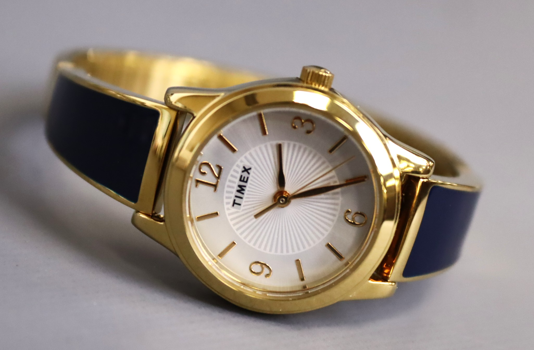 Timex Women's Stretch Bangle 25mm Blue/Gold Stainless Steel [ Need Battery ]
