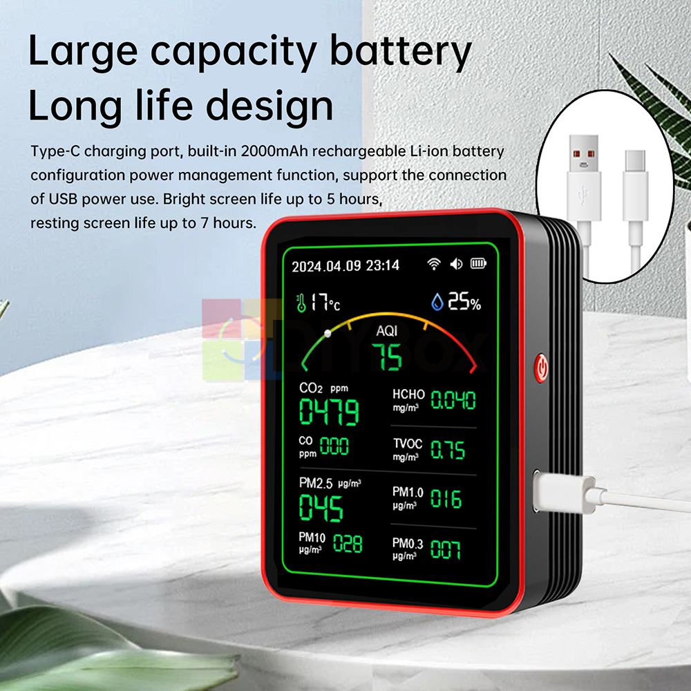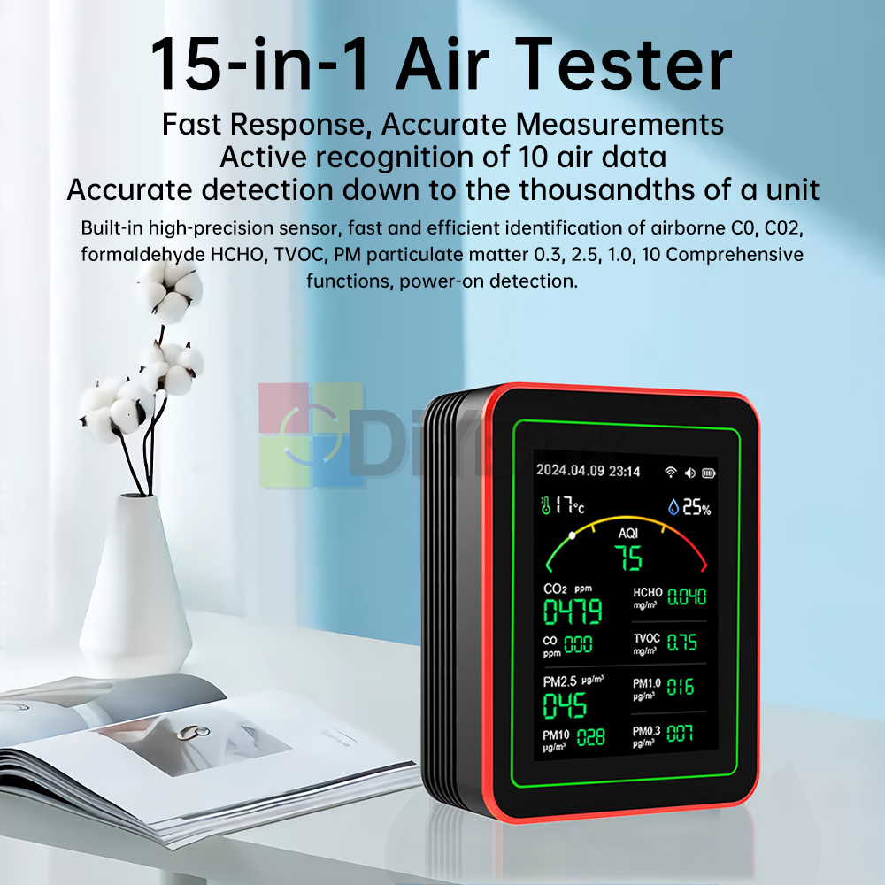 Tuya WiFi 15 in 1 Air Quality Detector AQI PM0.3/1.0/2.5/10 CO2 TVOC HCHO Tester