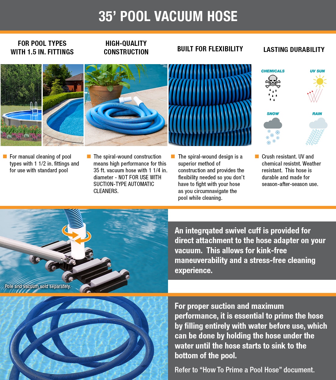 - Top-of-the-line construction means high performance for this 35 ft. vacuum hose - For use with in-ground and above-ground pools