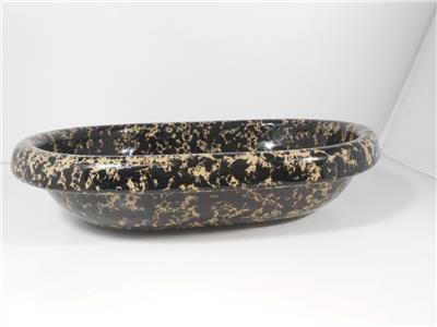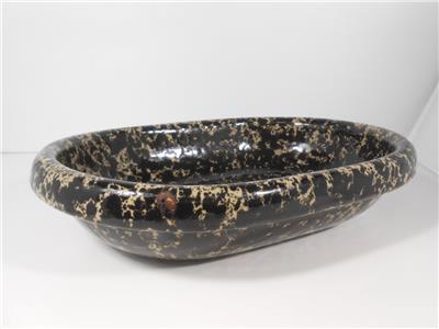 LARGE OVAL BOWL BLACK/TAN AGATE Measures: 15.5" long, 11.25" wide, 3.5" tall. EXCELLENT CONDITION. PLEASE CHECK ALL PICTURES.