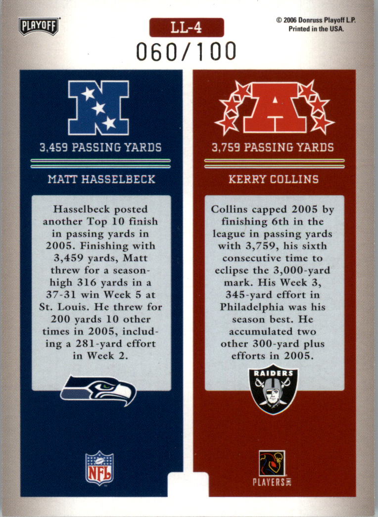 2006 Playoff Prestige League Leaders Foil #4 Matt Hasselbeck Kerry Collins /100